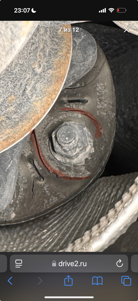 Я на эту муфту смотрю каждое ТО. И за последний промежуток стало сильно хуже. Это не трещины, это разрыв уже. Вот надо было сфоткать снятую уже, там лучше видно. На фото красным — это сквозной разрыв.