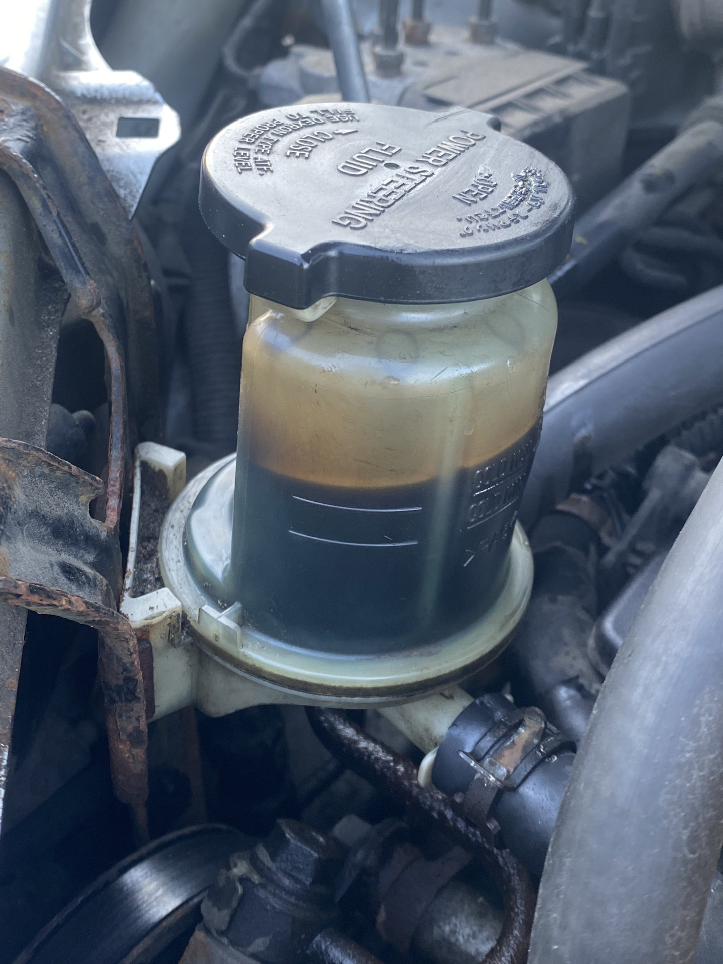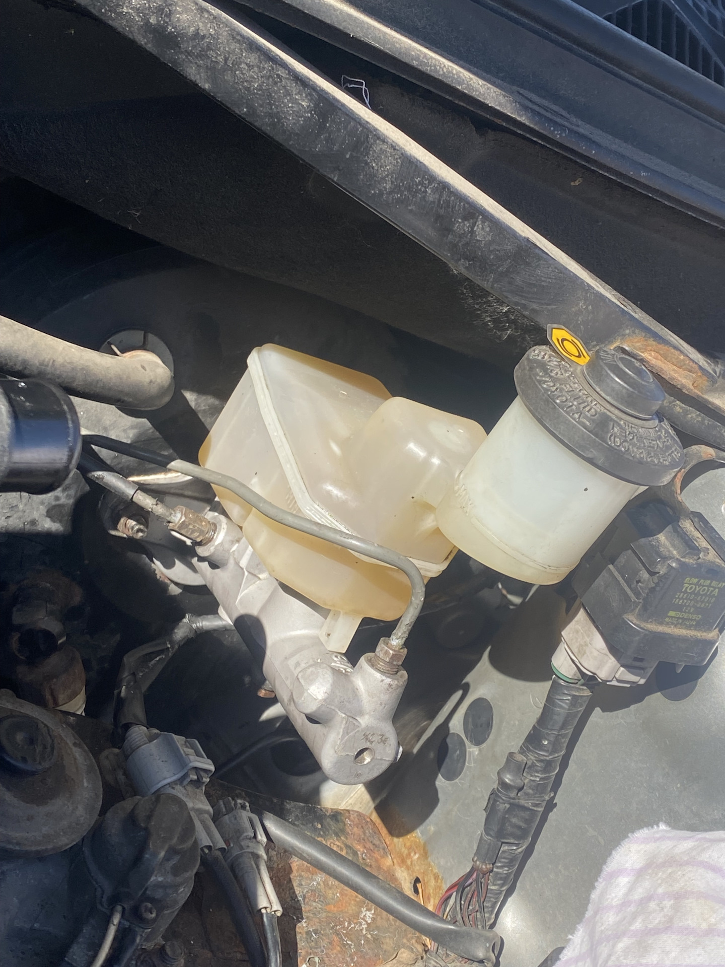 Все собрал, проверил направляющие пальцы и пыльники суппортов, прокачал тормозную систему. Заменил жидкость гур с частичной заменой, шланг обратки в бутылку, в подачи заливал новую жижу, так же вымыл бочок для жидкости гур и тормозной жидкости.У тормозного цилиндра снизу бачка есть штифт, который надо достать чтоб извлечь бачок. Я снимал весь бачок, вымывал внутри, была грязь черная, за одно раскидал его проверил состояние манжет.