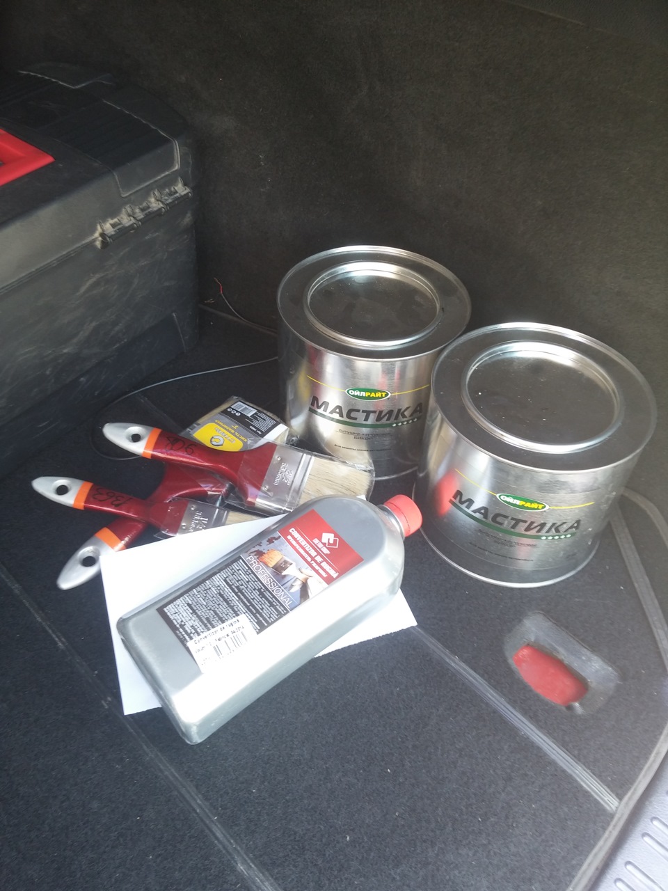 Я похожей мастикой в салоне пол обработал три года назад. Позавчера разлил в багажнике 20 литров воды — в салоне круто хлюпает… Поднял ковер, а мастика как вчера намазана — липнет и пачкает руки ))) Она, правда, так ещё и как клей — изолон (или как его) на ней сидит. www.drive2.ru/l/288230376153143006/ Ты на мастике закончил?