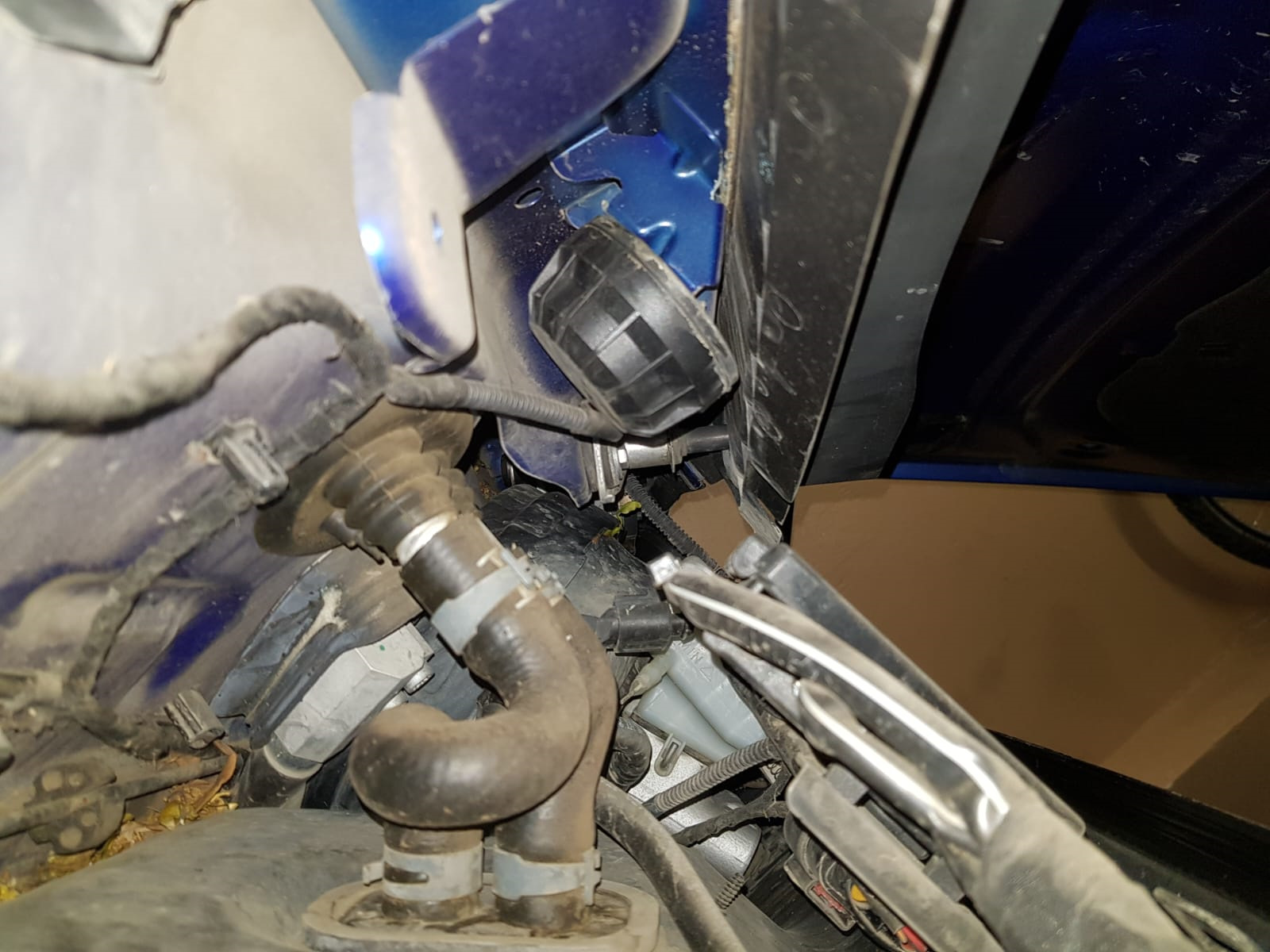 Снимаем облицовку под жабо, рядом с фильтром предварительной очистки воздуха подачи в салон есть приваренная шпилька, вот на нее на одну гайку крепим блок управления. Он легкий и никуда не денется. Делали установку вместе с Виктором Bender100770, мы решили не сверлить отверстие под динамик, а установить его на жесткую переходную платину.