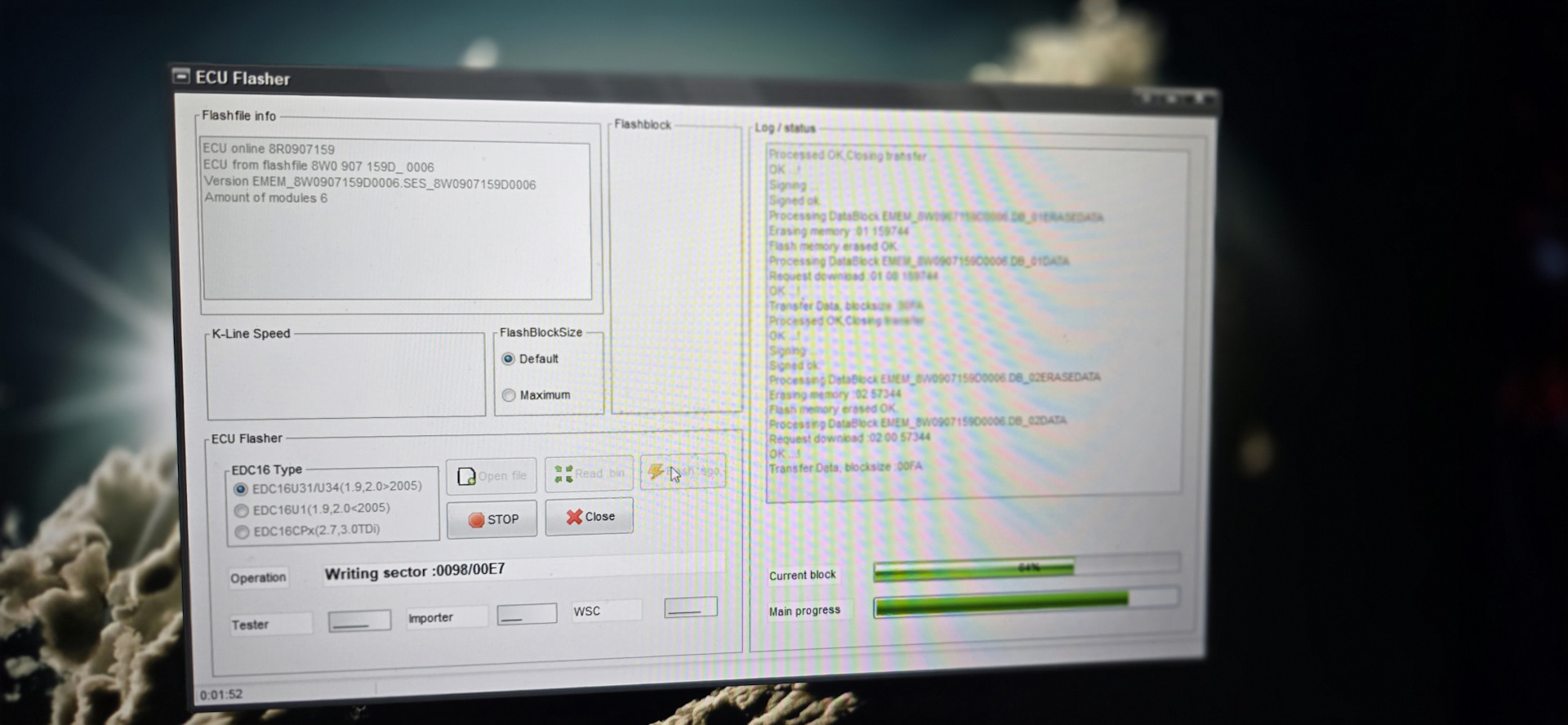 Теперь эта задача решается путем прошивки блока управления на разлоченную прошивку. Переходим на сайт и скачиваем именно под наш бок 8K0907159. Берем Одис или VCP для загрузки прошивки.
