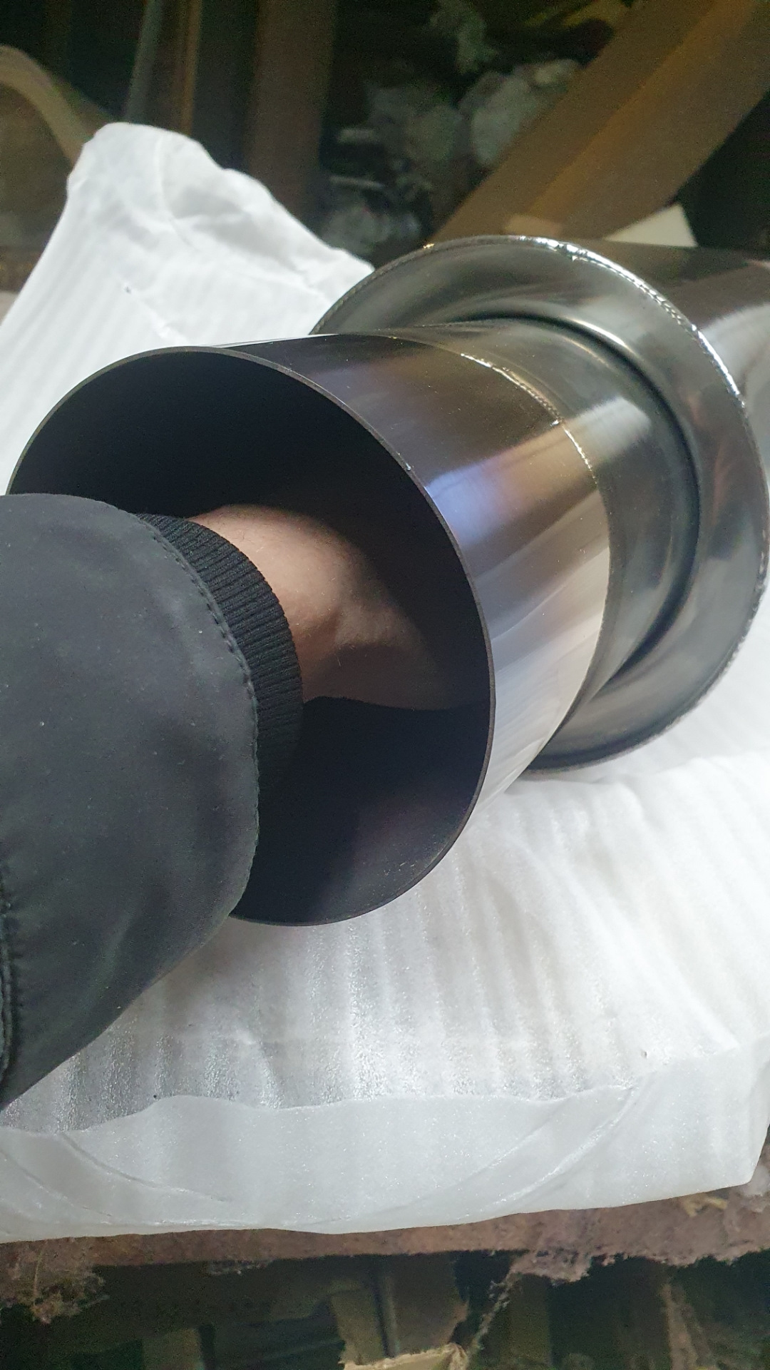 Если нужен действительно хороший прямоток рекомендую ознакомиться с любой штатной конечной банкой автомобиля, где отдельно идет полноразмерный резонатор и отдельно банка — я лично поставил себе на турбо мотор от qx56 (она под 76мм трубу), продувка и звук — просто огонь, не громко и достаточно сурово, все звяки бряки прибирает, недаром инженеры трудились. А заводские спортивные японцы из нержи тоже могут быть очень громкими и звонкими, не угадаешь.