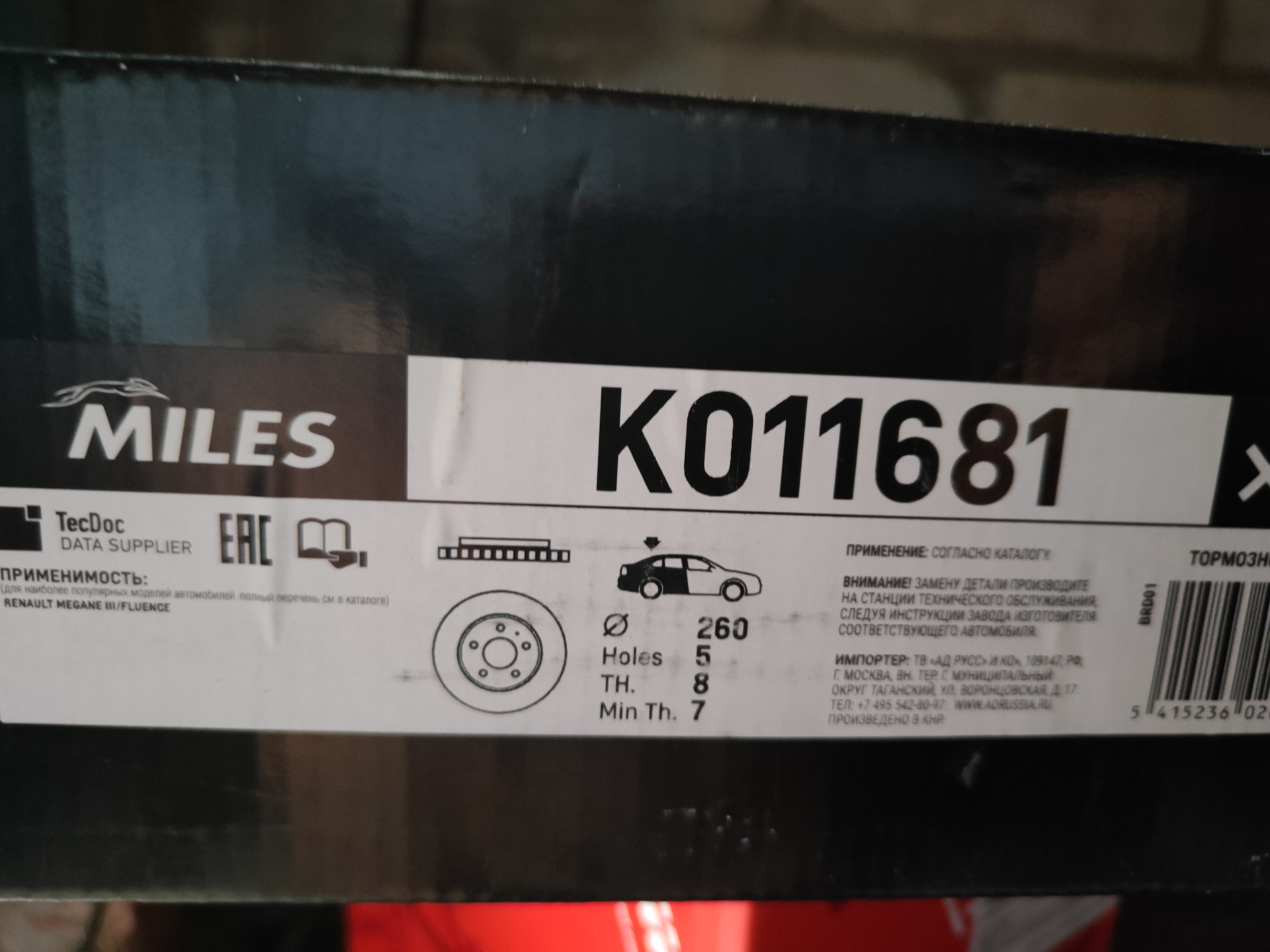 Диски тормозные задние Miles K011681 (2шт) — 7674₽;
