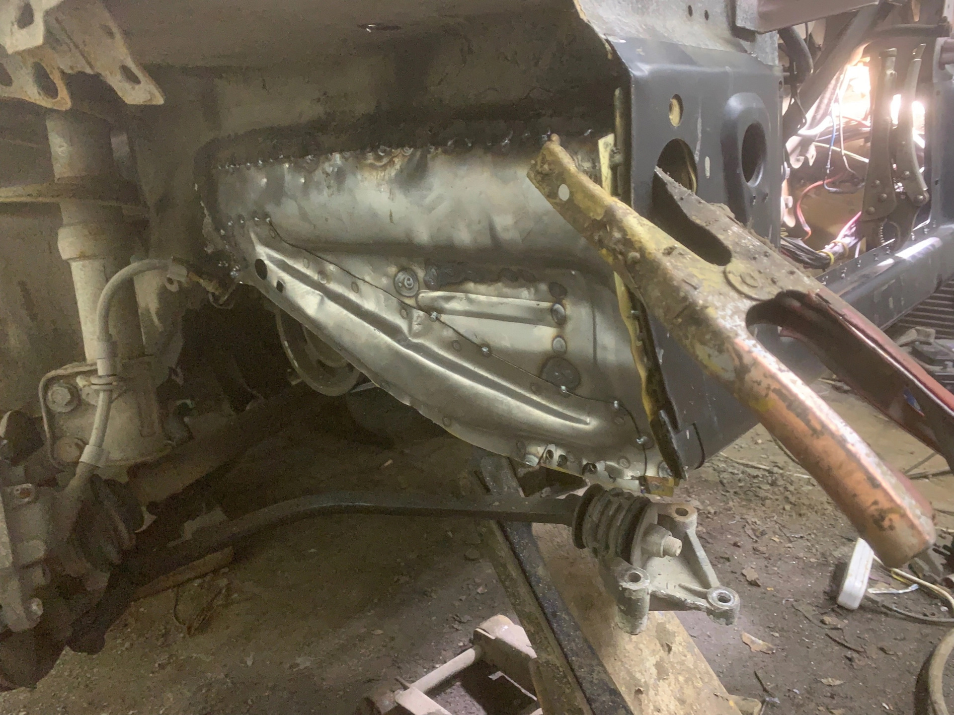 Мастер уложился за день. полностью переварил и усилил несущие части рамки, предварительно проварив гайки на креплении черепах