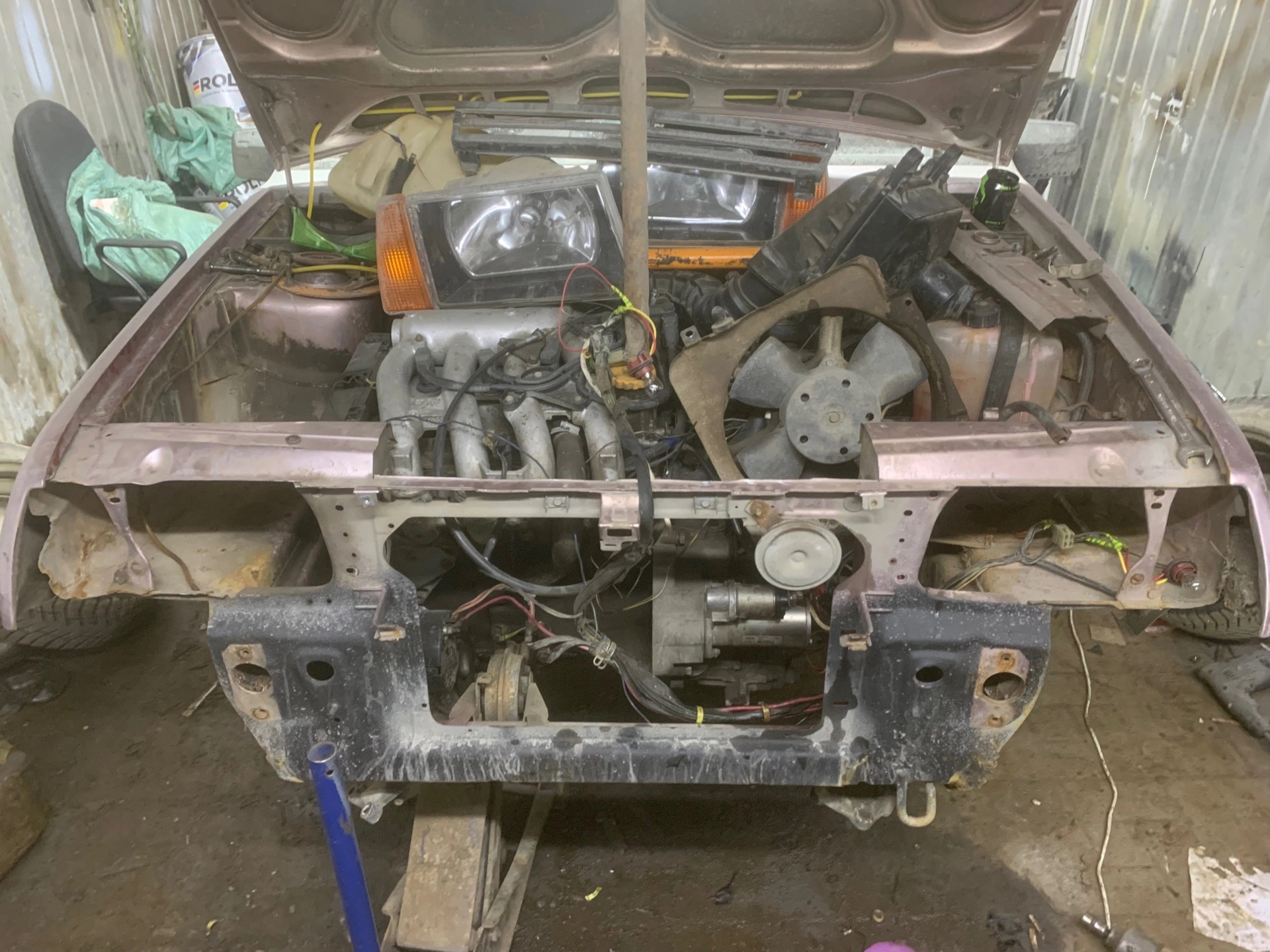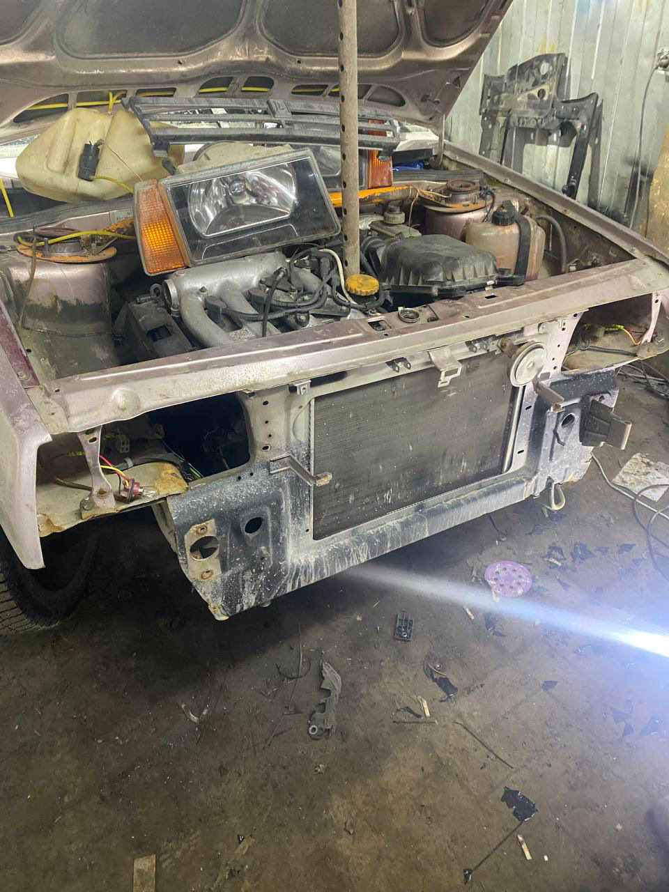 после разбора сразу выпилил верхнюю часть рамки, все для удобств в последующих копаниях с мотором, путем демонтажа радиатора охлаждения