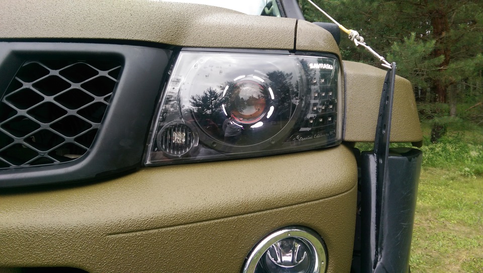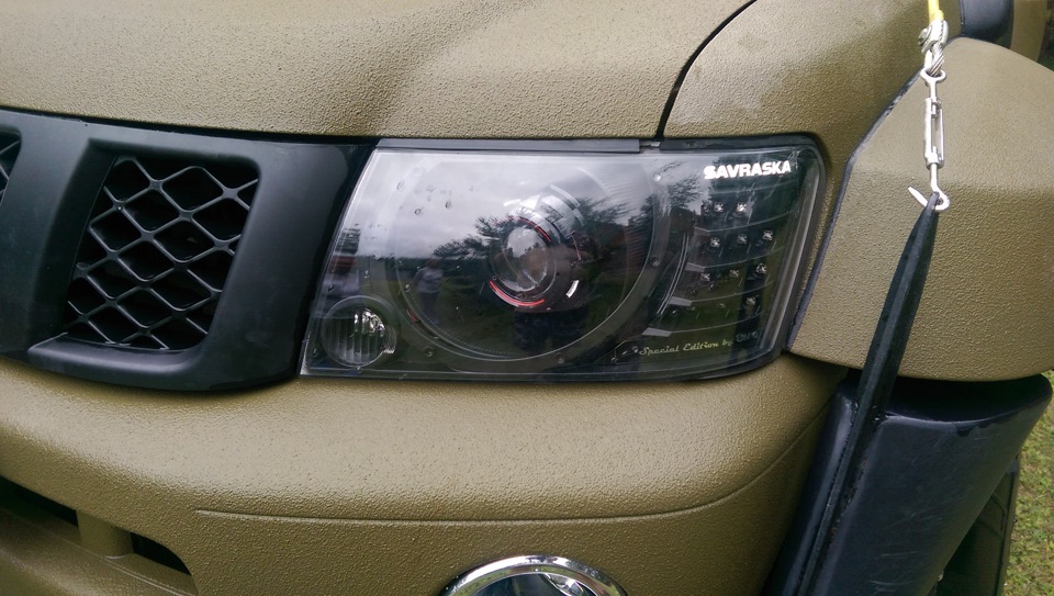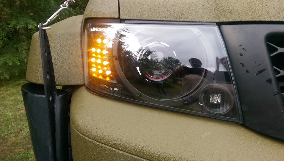 Ну вот наконец то завершил задуманное! После смены решетки с хрома на черную сильно стал бросаться в глаза хром самих фар. Решил попробовать изготовить оптику с черными масками, ну и добавить каких нибудь фишечек. Так как собственные руки никогда не росли из нужного места, мое участие в проекте как изготовителя не предполагалось))) Роль заготовителя мне нравилась больше и первое что я сделал — купил комплект тайваньских фар у Tuning-AlexM c уже частичным тюнингом светодиодных поворотников. Осталось дело за мастером. Было несколько вариантов, остановился на рекомендации драйвовчан и отдал сей проект в руки Сергея, талантливого мастера, Sergey-3d его ник на драйве. Серега к работе относится очень ответственно и кропотливо, ну и наш человек, бездорожный проходимец на 105 крузере))) обсудили всякие технические детали в мелочах, и через две недели продукт был готов.
