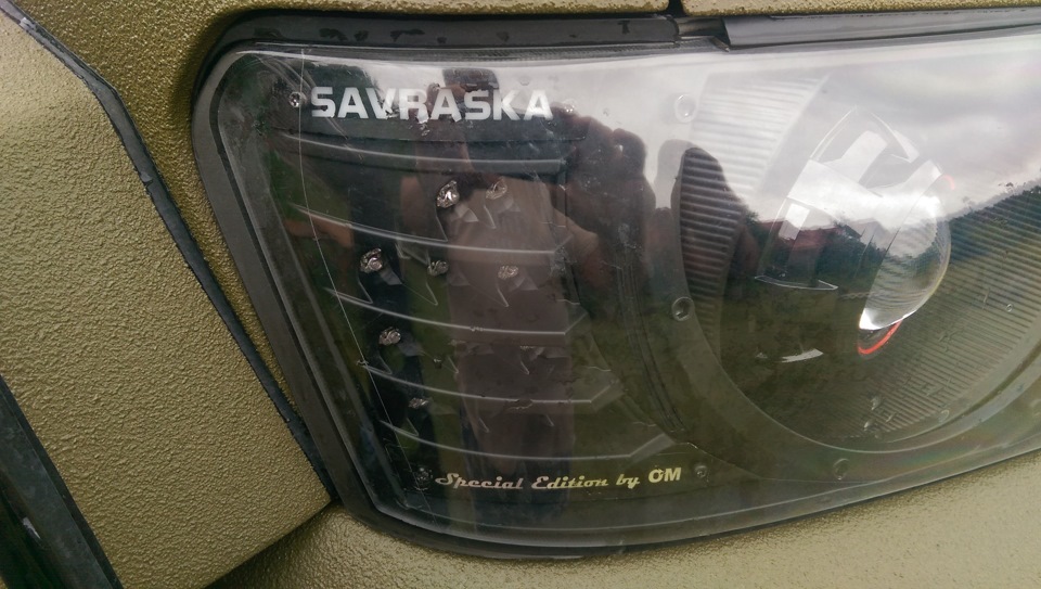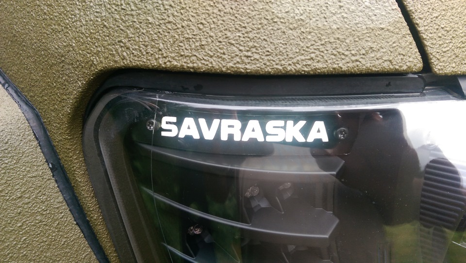 и полностью черные маски внутри, Серега сделал мне именные габариты в виде светящегося шильдика savraska