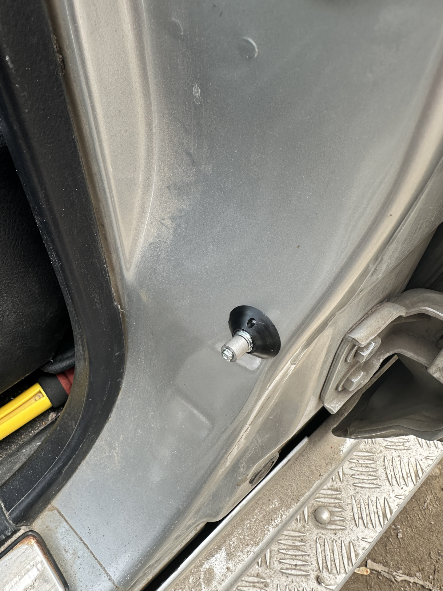 Затем в стойку ставим ответную часть с помощью резьбовой заклёпки из комплекта.