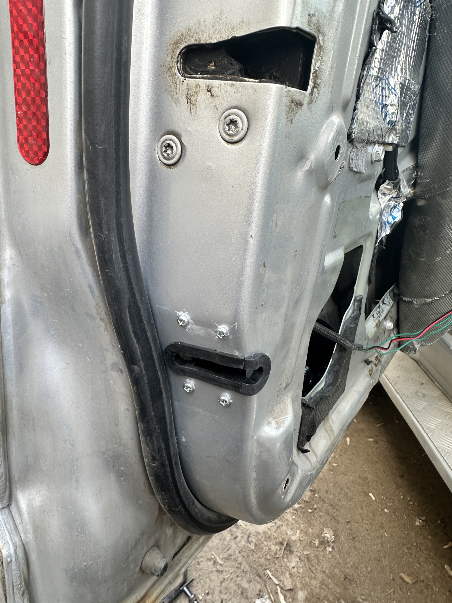 Который устанавливаем в дверь и закрепляем в просверленные отверстия. Мотор закрепил здесь.