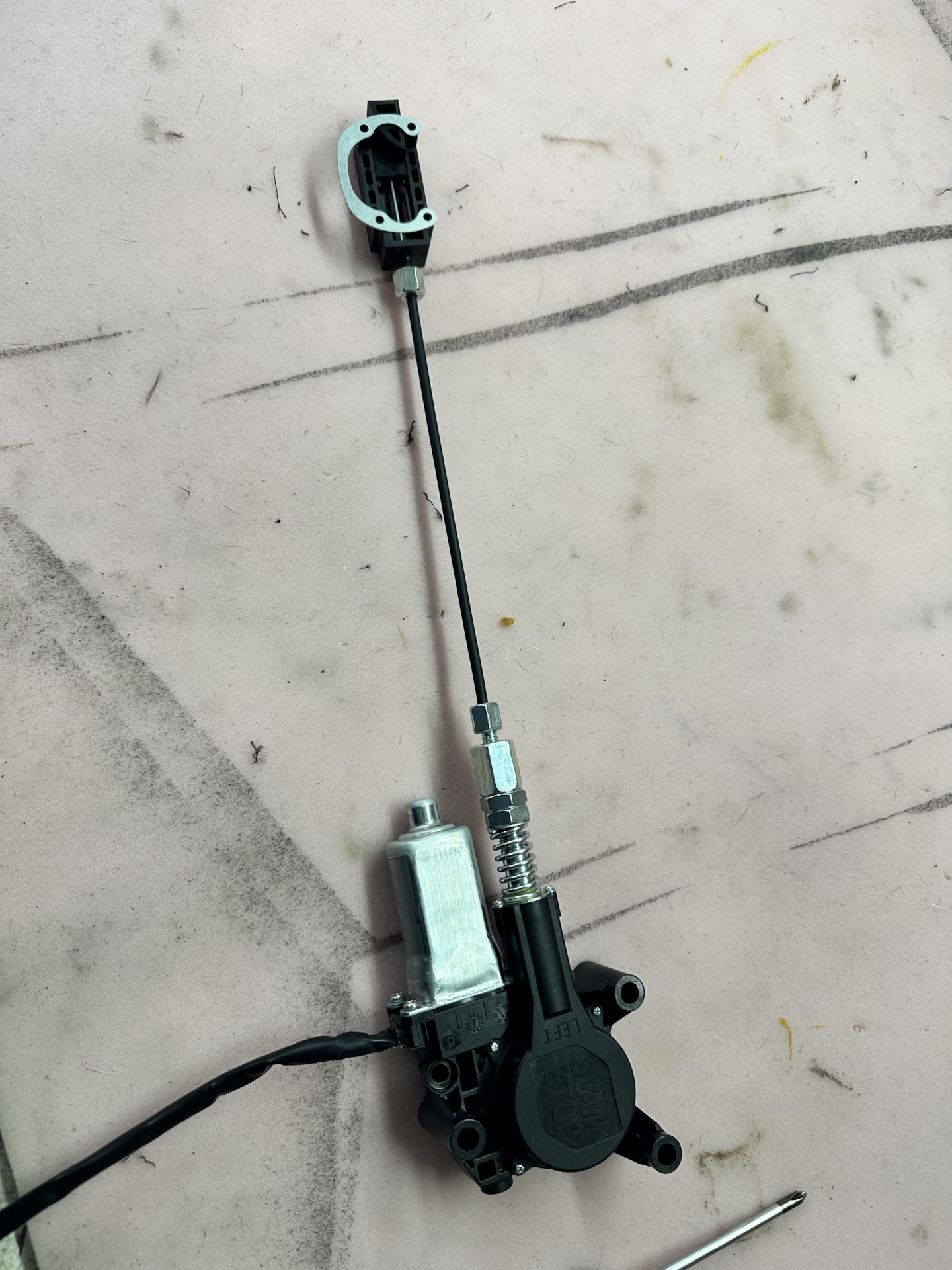 Затем обрезаем трос до нужной нам длины и собираем механизм.