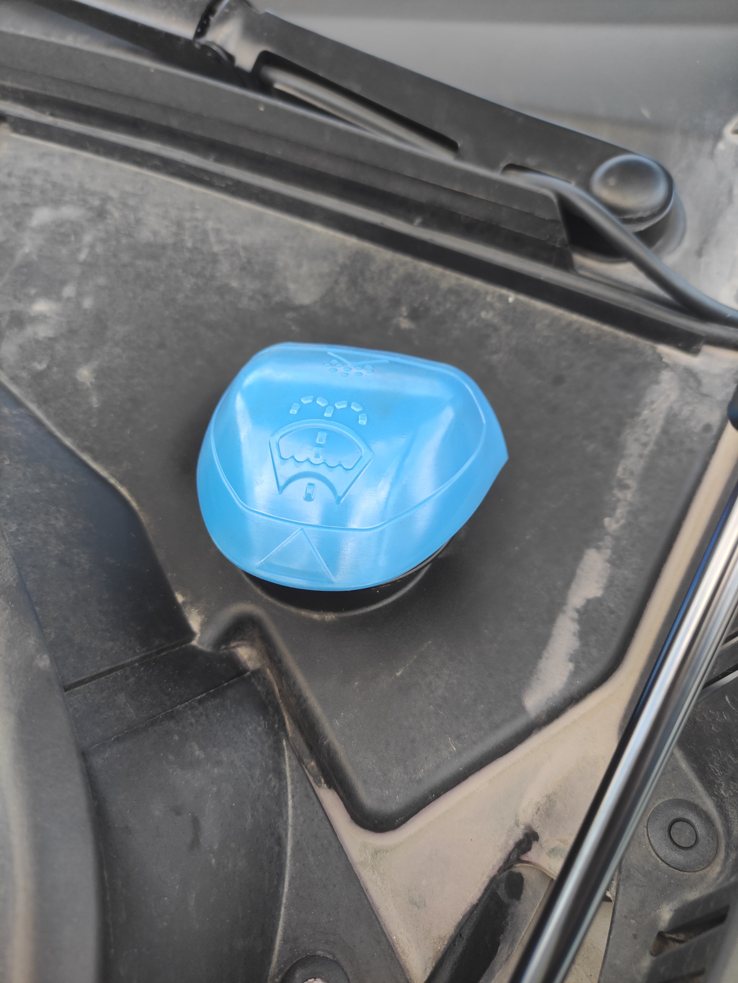 Давно смотрел у соучастников замены крышек горловины омывайки на голубые от VAG. Ну и решил, что мне тоже надо.
