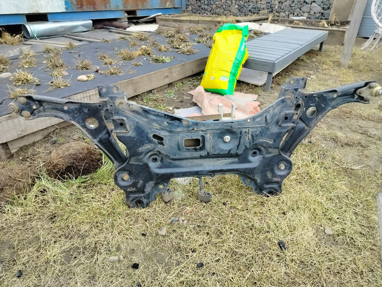 Для чего это нужно? Сам руль может крутиться вокруг своей оси бесконечное количество раз, а вот шлейф для работы кнопок руля предназначен для прокрутки руля в 2 с половиной оборота влево и два с половиной оборота вправо. Ни больше- ни меньше. Затем поднимаем переднюю часть авто — в моем случае, я поддомкратил поочередно левую и правую сторону, поставил необходимое количество чурок-упоров. Снимаем колеса. Далее откручиваем шаровые опоры. Опоры снимал не с рычага, а в месте крепления со ступицей. Там в моем случае — вытаскиваем шпильку и откручиваем гайку на 22 с шаровой опоры (на оригинале шпильки нет, кстати). Хотите лайв-хак, как отсоединить шаровую от ступицы без лишней долбежке по ней или ступице? Держите — под шаровую устанавливаем домкрат и подторачиваем шаровую. Далее, в образовавшуюся "нишу" между рычагом и ступицей, вставляем подходящую по размеру "любую прочную металлическую штуковину" — в моем случае это небольшая монтировка или старое дедовское долото. Следующим шагом потихоньку опускаем домкрат и, если в процессе услышали характерный "щелк" — вот оно счастье — шаровая отошла от ступицы. Далее — разъединить стойку амортизатора от стойки стабилизатора. Можно, конечно, отцепить от самого стабилизатора, но удобнее от амортизатора, поверьте. Следом бы я разъединил рулевые тяги от ступицы (в реале я их отцепил в самом конце. Не критично, но не последовательно). По сложностям в данном конкретном процессе — видел как свояк в сервисе одним четким ударом молотка по ступице в месте соединения с рулевым наконечником "отщелкивал" соединение. Сразу скажу — у меня так не получилось. В итоге поливал WD-40, стучал молотком сбоку — помогло только накручивание гайки, надставление деревяного бруска и удары по бруску сверху вниз. И то — одну гайку подрасплющил, вторую потерял — почти как в анекдоте получилось))). Дальше — демонтируем защиту двигателя. Снимаем передние продольные тяги подрамника. Там по три болта на каждый упор. Один длинный спереди на 18 и два коротких в месте крепления подрамника — на 15. Следом выкручиваем болт крепления подушки двигателя с подрамником, а дальше отсоединяем резинки крепления выхлопной магистрали. Следующим этапом я подставил пару чурок под подрамник и стал откручивать основные болты крепления подрамника к корпусу авто. Мой гайковерт не смог сорвать их. Пришлось взять трубу "удлинитель" у соседа и срывать вручную. Чуть сорвал, дальше можно гайковертом. Но не торопитесь — в задней части подрамника с каждой стороны нужно еще ослабить по два болта задних кронштейнов. И тут я посмотрел на рейку и понял что не вижу как и где её отсоединить от рулевой колонки. Помог свояк — подсказал, что скорее всего она отцепляется из салона и что лучше отсоединить рулевой вал от карманчика до того момента, как снимешь подрамник с рейкой. Он был прав — со стороны водителя в районе педалей на рулевом карданчике откручиваем болт на 12 и потихонечку движениями влево-вправо, вверх и вниз вытаскиваем карданчик из рулевого вала. Следом окончательно откручиваем 4 болта крепления подрамника и вуаля — вытаскиваем подрамник с рейкой из под авто.