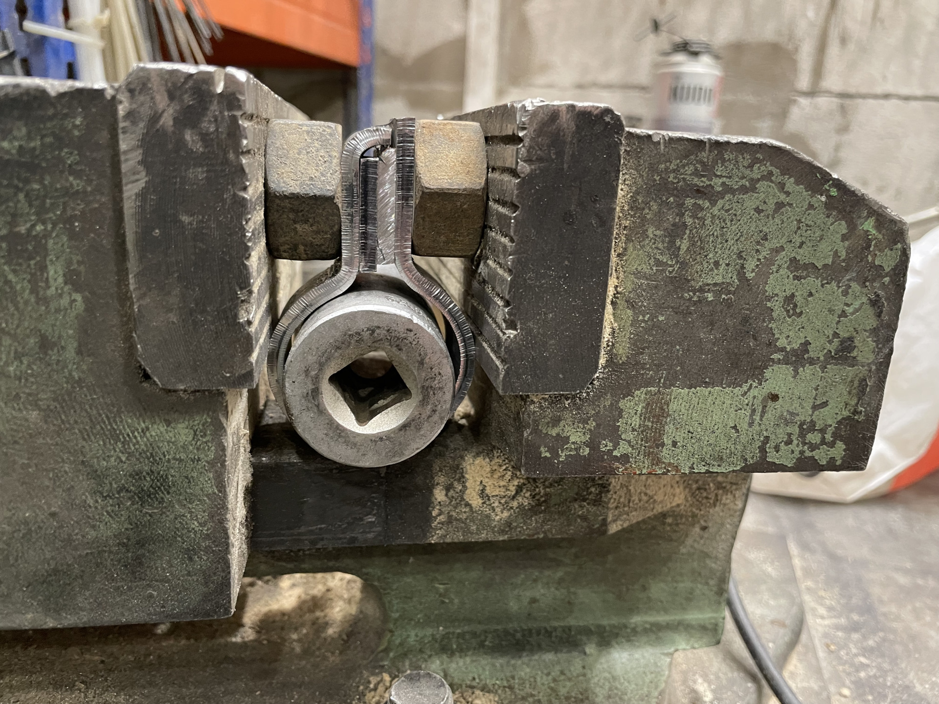 Как обычно головка по диаметру, станочные тиски и любимый килограммовый молоточек.