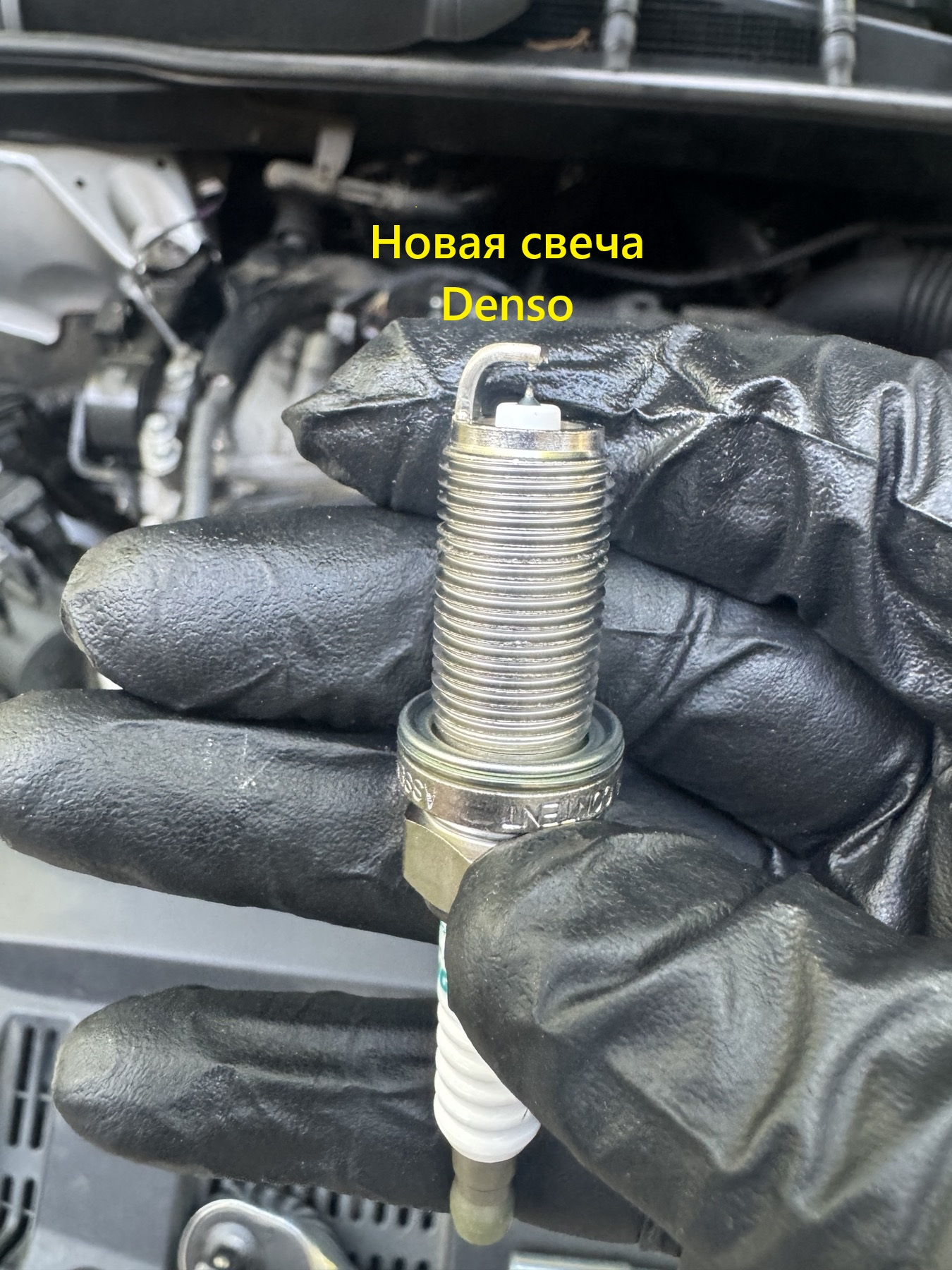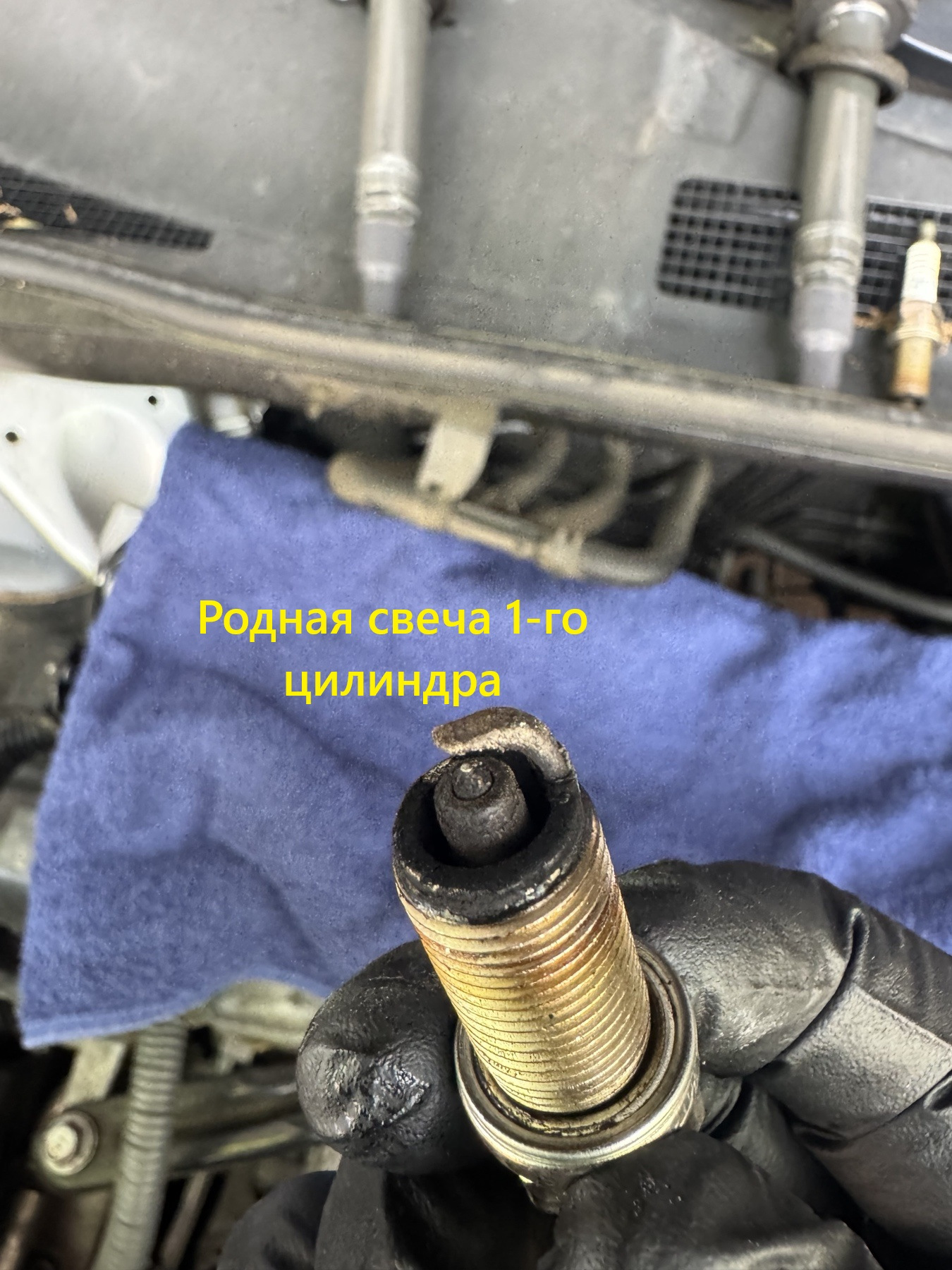 Достал старые свечи, все грязные (на фото будет свеча с 1-го цилиндра, остальные такие же), стояли Denso SK16HR11.