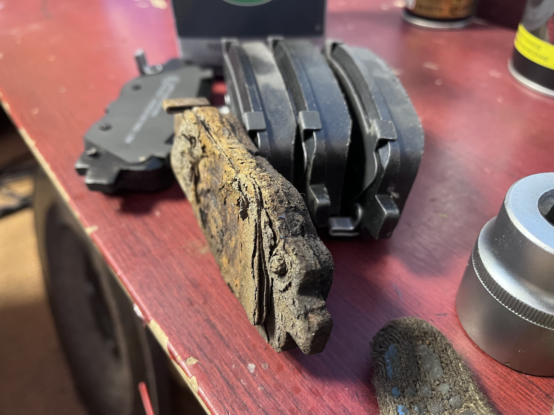 Задние колодки менял 2 года назад на Friction Master MKD1734, они ещё не сильно сточены, но в хлам проржавели, нужно менять.