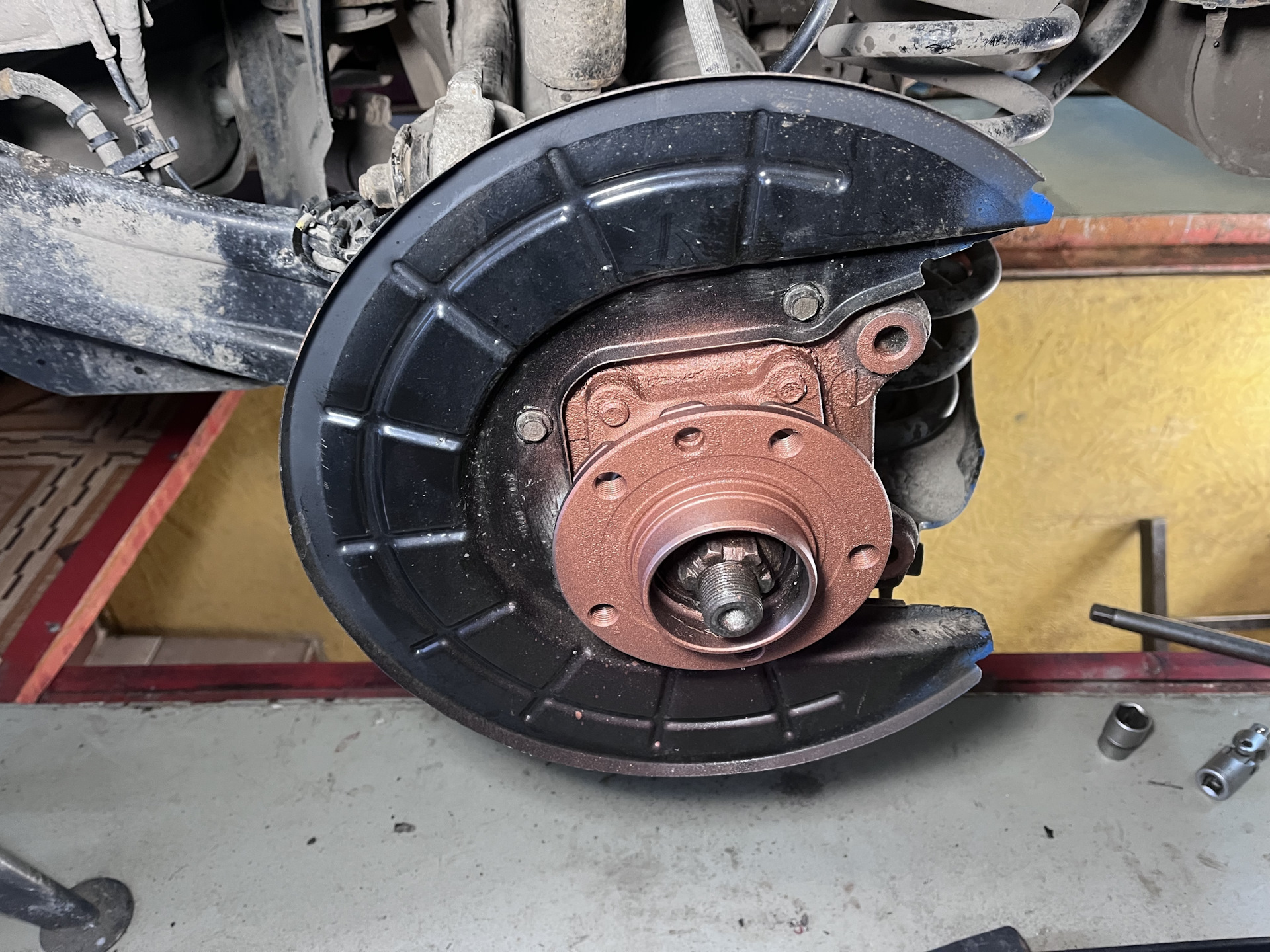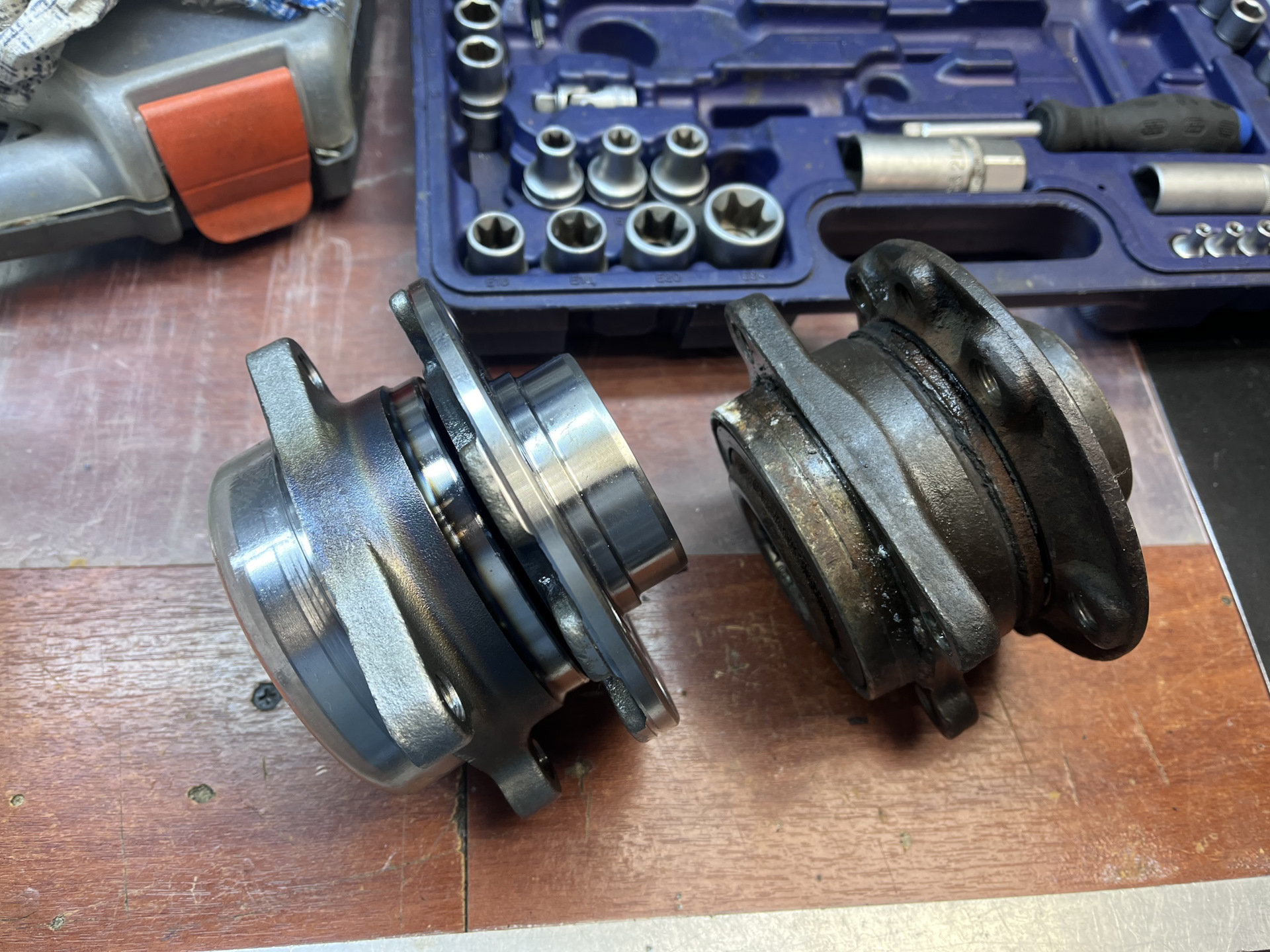 Потихоньку добираюсь до того, что ещё не менял. В этот раз под замену задние ступицы в сборе и тормозные диски с колодками.