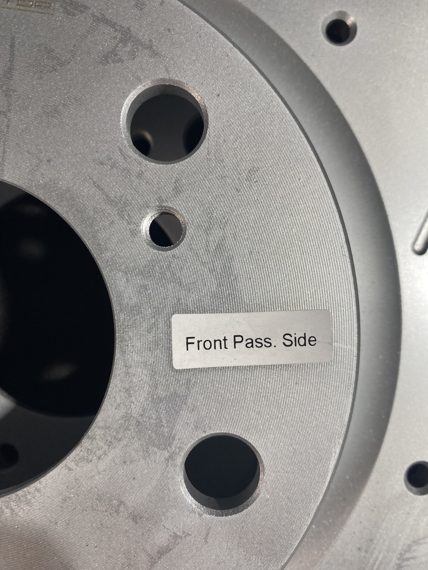 На дисках есть опознавательная наклейка, которая обозначает сторону установку, для того что бы поставить диск правильно, это важно!