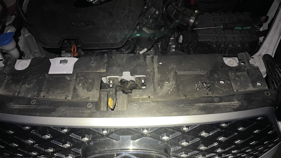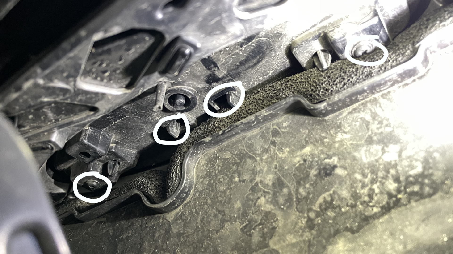Далее просовываем руку внутрь и откручивает два самореза, которые держат эмблему, отщелкиваем защелки по середине — готово!