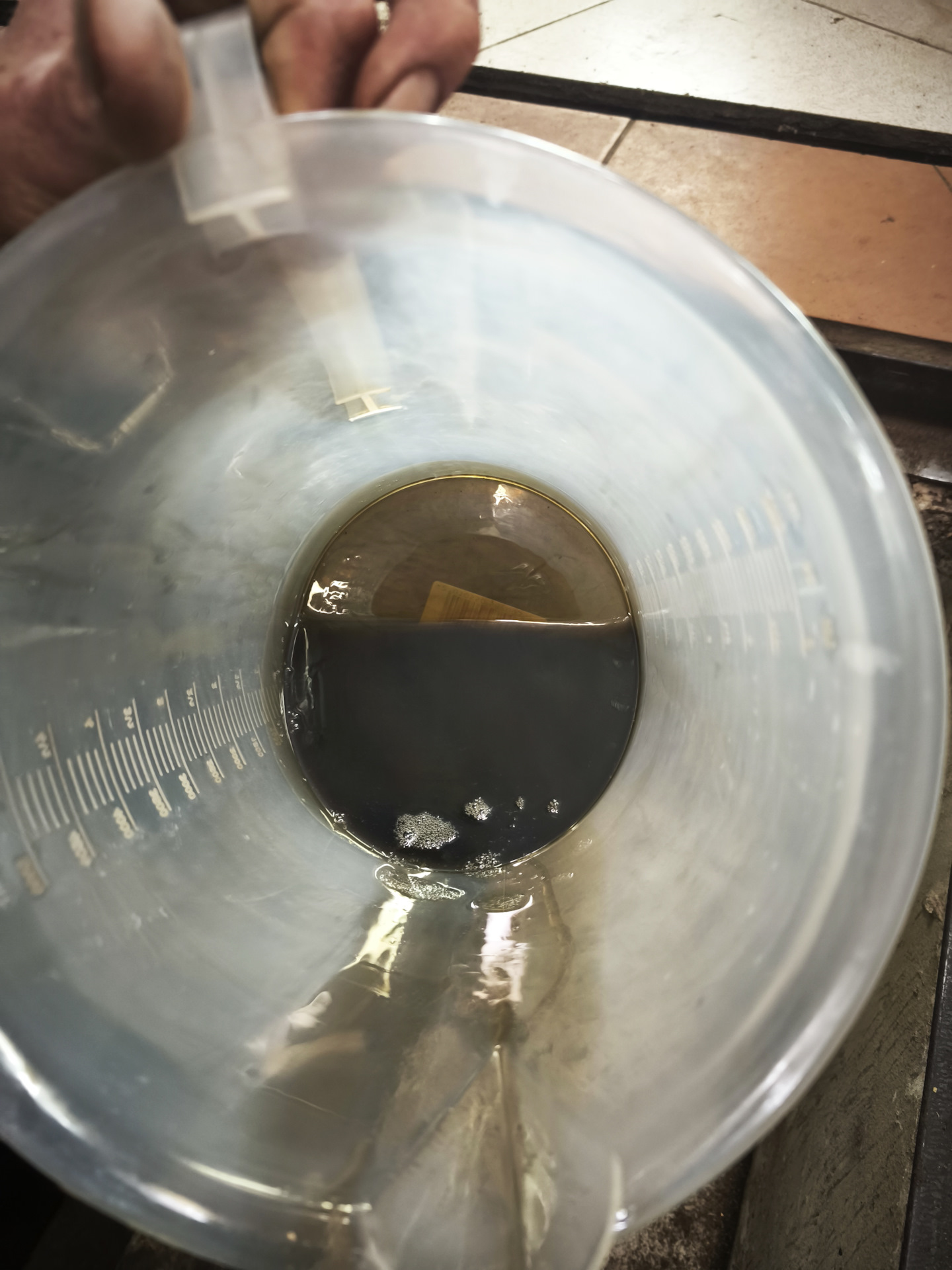 В переднем и заднем по два отверстия: сливное и заливное. Заливается до "вытекания". В переднем было темнее заднего. В перед вошло примерно 300гр, в задний 500гр.