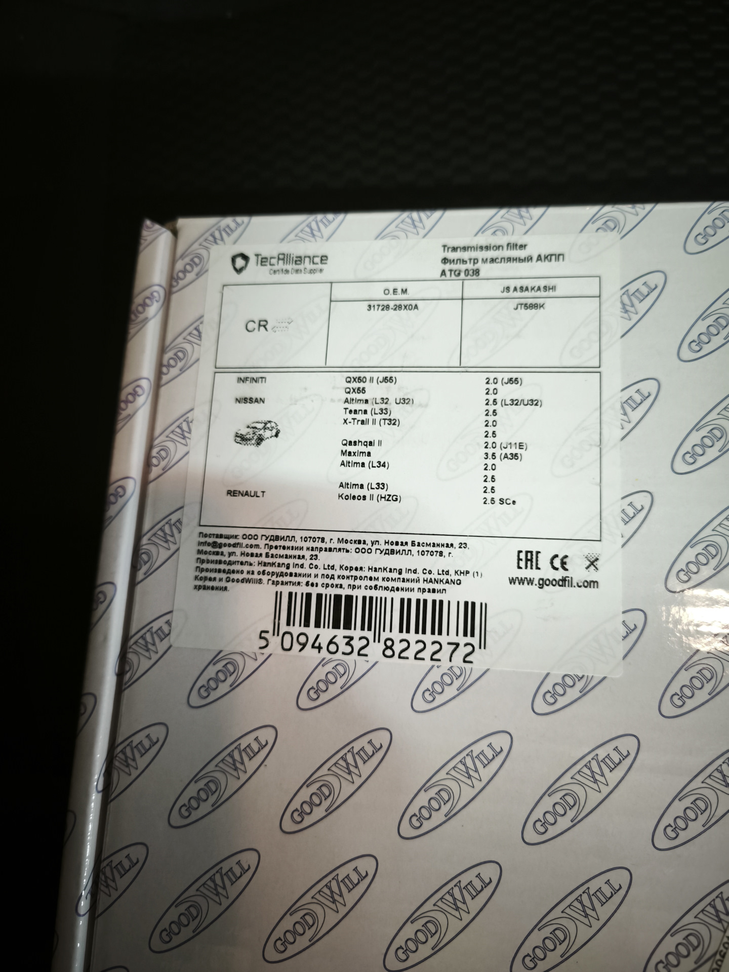 — фильтр грубой очистки с прокладкой поддона вариатора (аналог Goodwill)