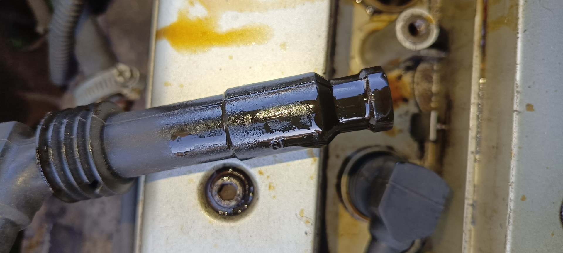 Протекла прокладка, возможно я масло когда менял немного лишнего налил вот ее и продавило, может и нет но свечи все были в масле . Купил патрон — вам не советую ( в фото объясню почему.