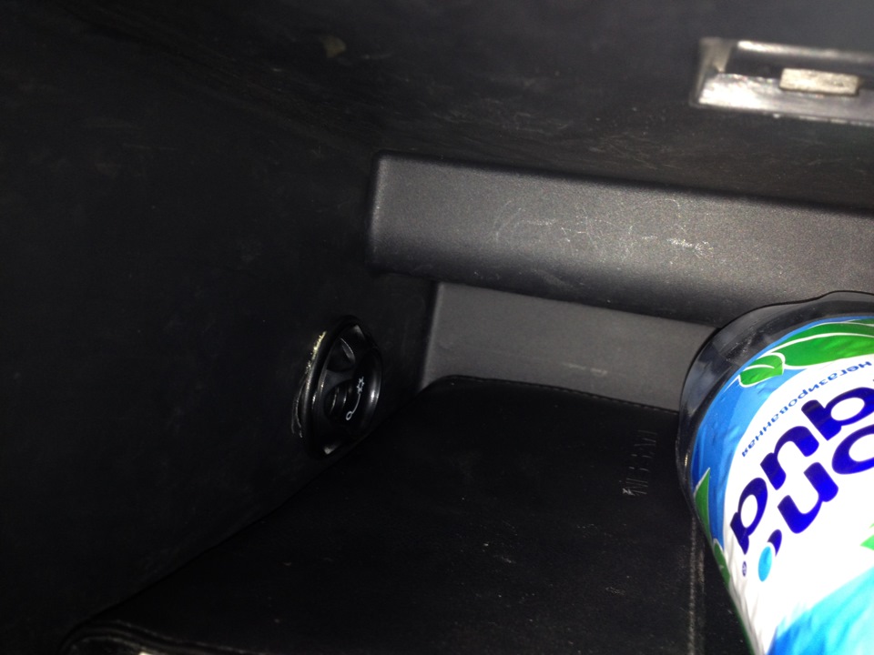 В бардачке тоже делаем отверстие, с левой стороны, примерно на мягкой ткане.
