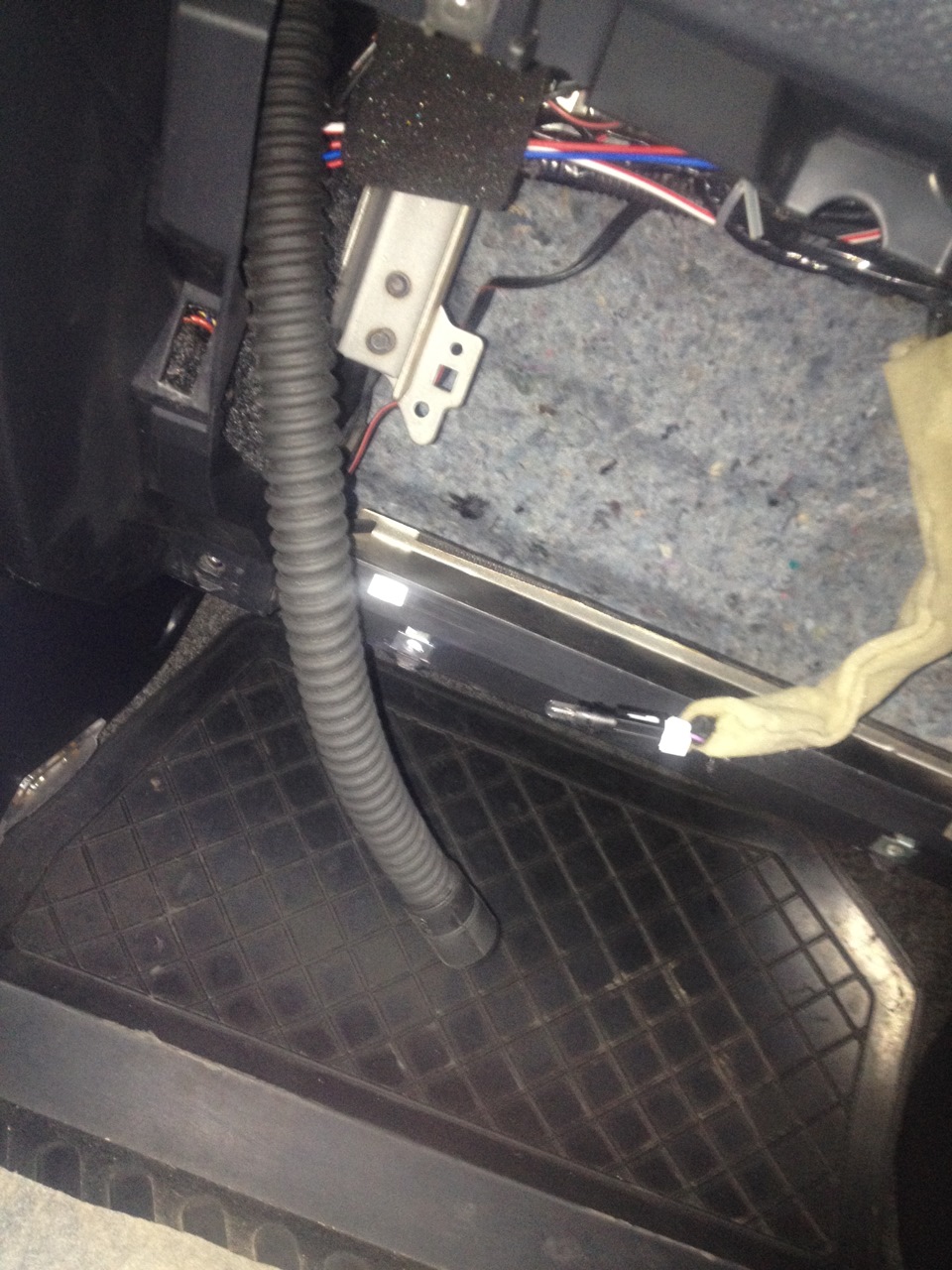 Начинаем вставлять аккуратно бардачек на место, но не вставляем полностью, что бы было видно место подключения шланга и не забываем про подключение подсветки бардачка.