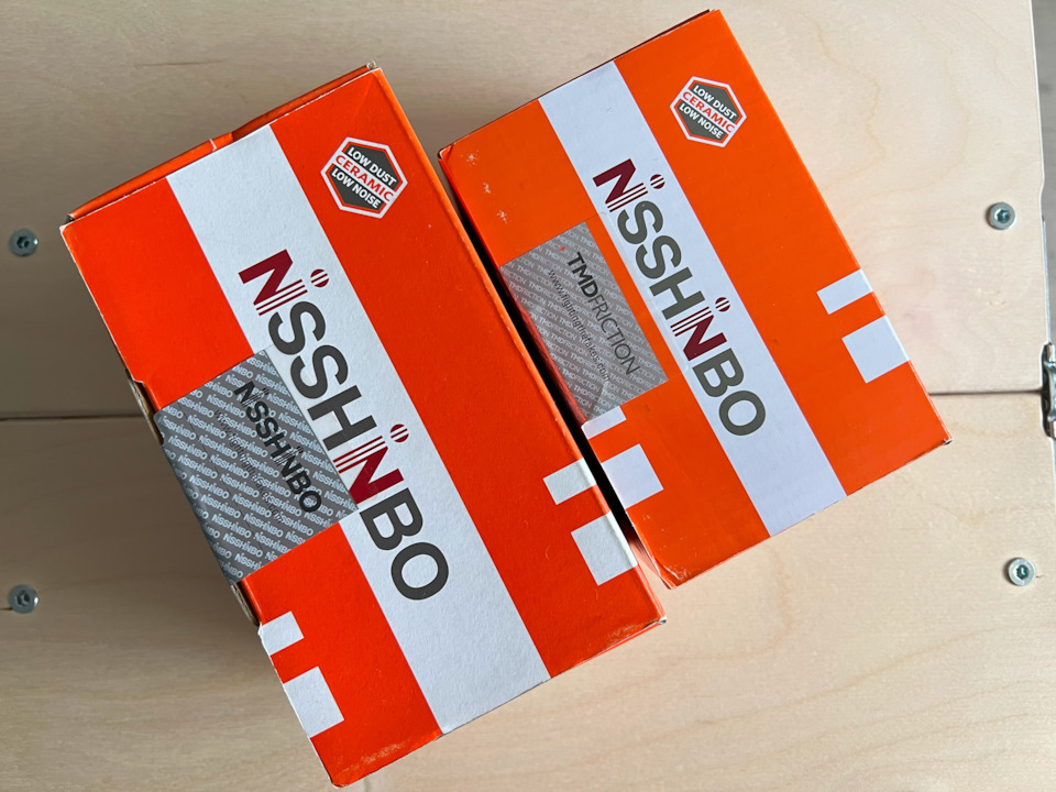 С наступлением плюсовых температур начал замечать, что колодки засвистели и запели, как те весенние соловьи, причём поначалу только в мокрую погоду, а потом и на сухую. А раз так — надо бы всё же принимать меры к их успокоению, да и в пробках народ начинал оборачиваться. Решено — меняем колодки. Выбор нынче огромный, но хотелось не упарываться ни в дешёвые NiBK, ни в дорогие Endless, а выбрать оптимальную середину. Почитал отзывы, поворошил личный опыт, и прикупил Nisshinbo на круговую замену.