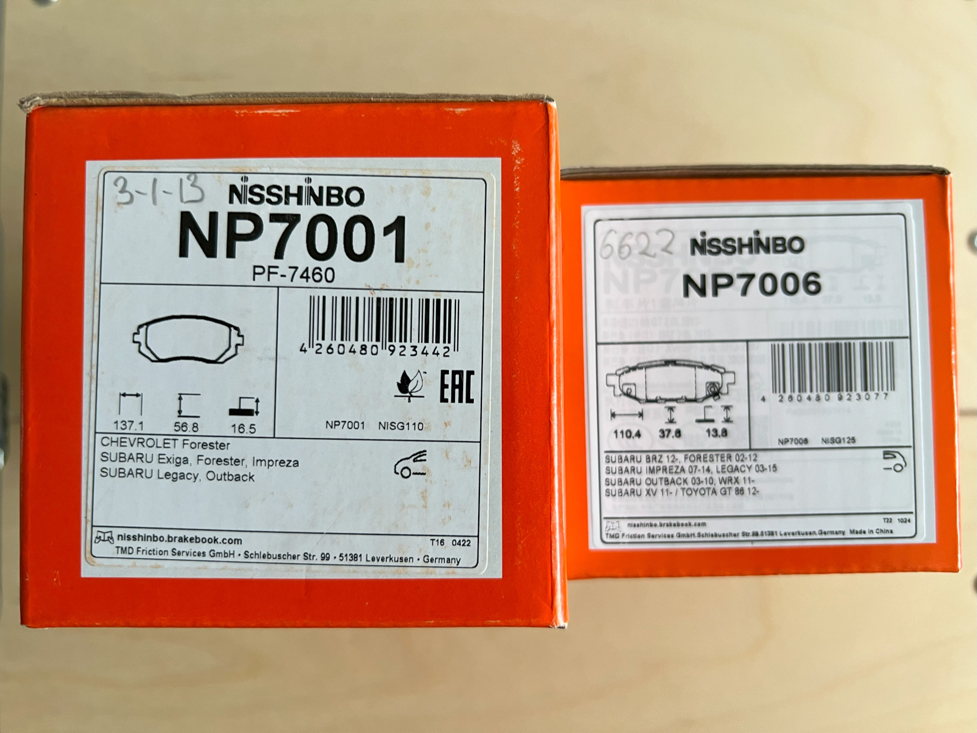 А передние Nisshinbo NP7001 под штатный диск теперь продаю за ненадобностью, целлофан даже не распаковывал. Ценник малость ниже рынка, но продам только в Новосибирске, доставка для покупателя съест всю экономию.