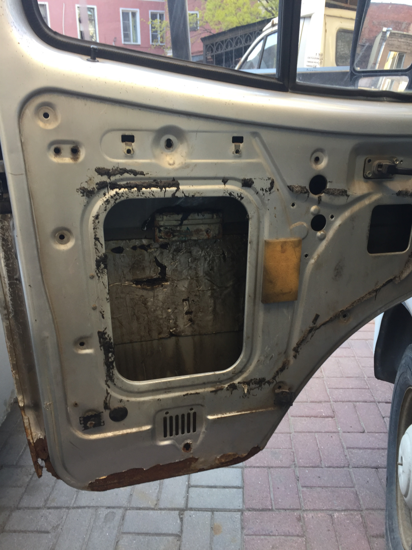 в виде оторванной от стекла планки. Так же пришлось повозиться с нижним креплением старого стеклоподъёмника, нижняя гайка ни как не хотела откручиваться, прокручивал сам резиновый бочонок. Разобравшись с ним я засверлил отверстия по образу и подобию, как и с водительской стороны и приделал