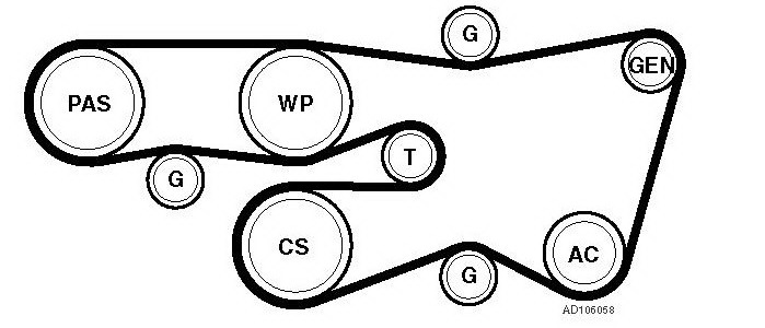 Прокладку приводного ремня необходимо начинать со шкива коленвала. Далее или по схеме или руководствуюсь здравым смыслом: на шкивы с пазами под ручейки ремень ложится ребристой стороной, на паразитные ролики ровной.