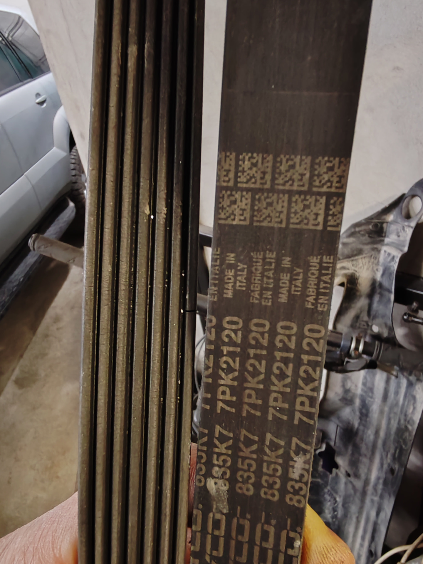 Как фирмы выбрали? Ремень Dayco Italy, есть несколько трещин только по ручейкам, корд и силовой каркас в образцовом состоянии, маркировка почти не стерлась. Планирую замену в будущем вместе с роликами, которые в данное время тоже в рабочем состоянии.