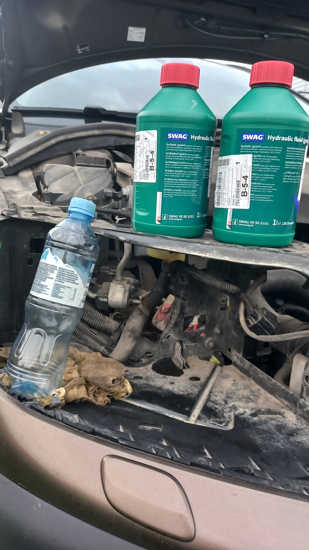Заливаем полный бачек новой жижи и крутим руль туда сюда до упора. Смотрим цвет того что слилось в бутылку, если не устраивает, повторяем пока не понравится.