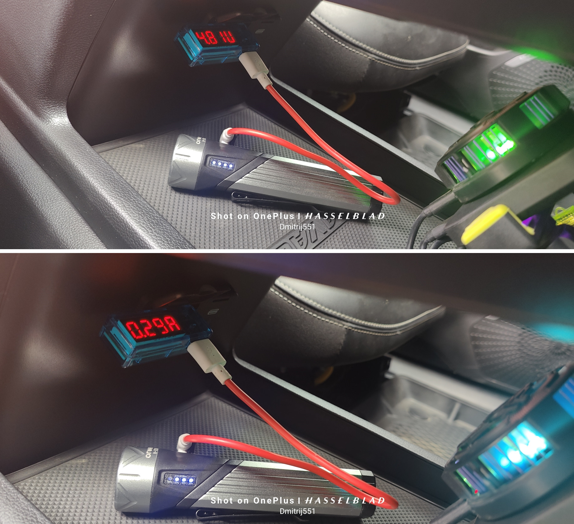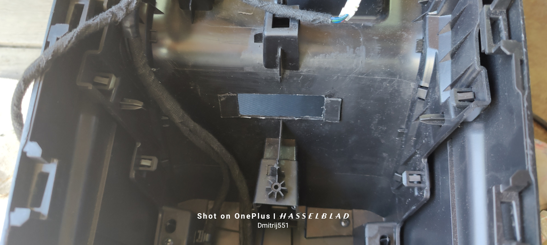 Незаменимая вещь в хозяйстве.Размечаю с помощью малярного скотча и пилю.Так как толщина пластика в этом месте недостаточная для фиксации, то наклеиваю дополнительные упоры под замки розетки.Безотходное производство)), упоры из вырезанного пластика…Сделал проводку, подключал параллельно задней розетке, упоры на всякий случай ещё зафиксировал теплоклеем.Вот так это выглядит, ни с одной стороны это не видно, если только специально сюда посмотреть.В принципе для установки в это место полностью снимать консоль не надо, достаточно только снять верхнюю накладку с крутилкой РКПП и отстегнуть 4 разъёма.Проверка работоспособности — фонарь заряжается.Да и что помощнее тоже тянет, например кулер.