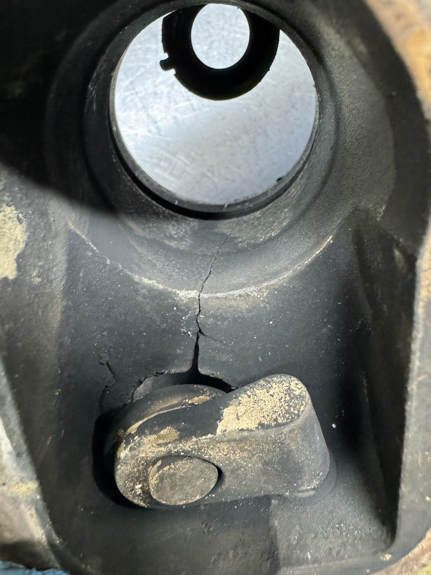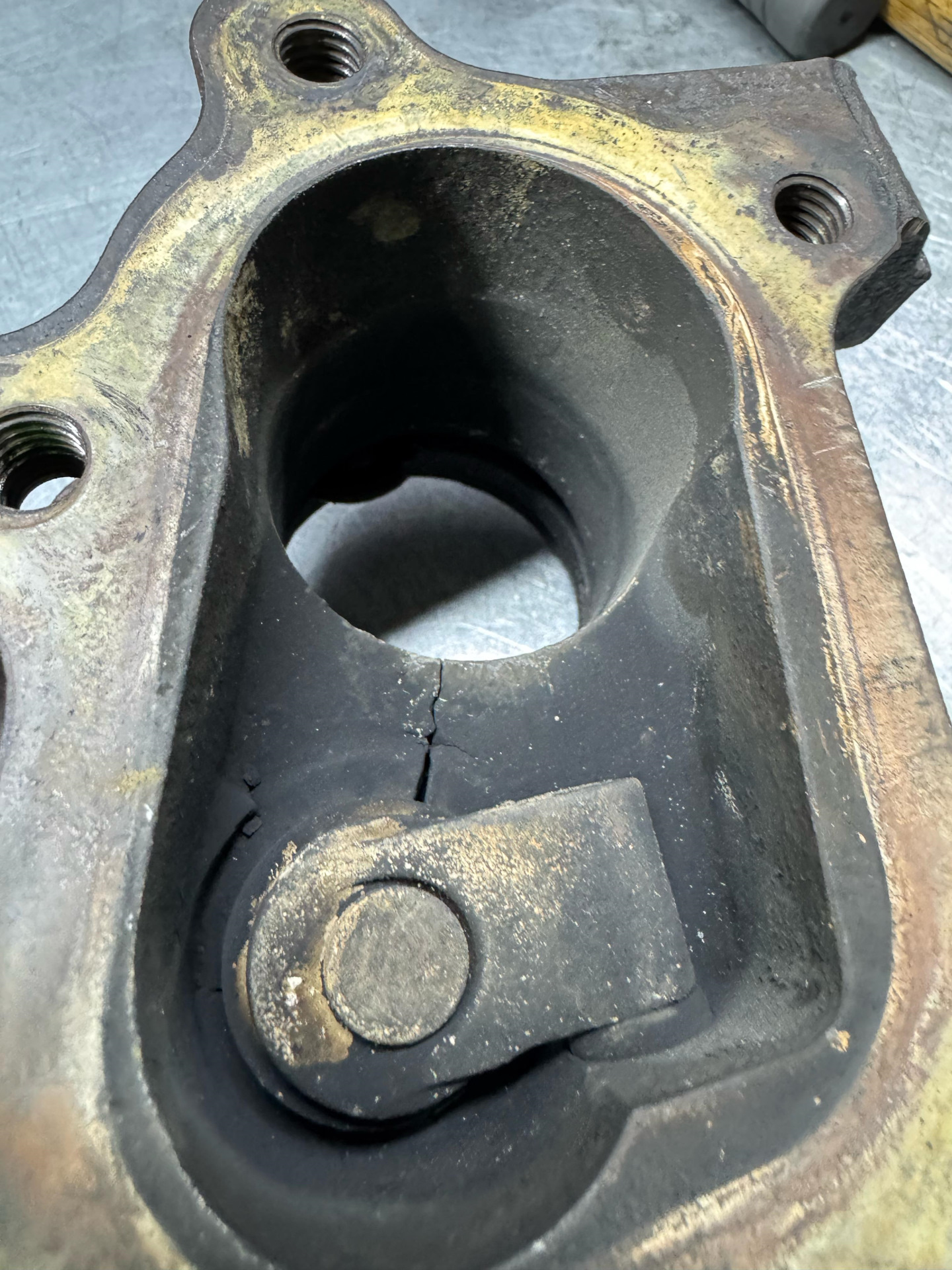 Пост написал, почитал коментарии, расстроился, что, похоже, майский отпуск проведу дома. Заочно была приговорена турбина, тесты и консультации подтвердили, что именно она, родненькая, закончила свои полномочия и оставила меня на месяц без машины. Т. к. в гараже лежала еще одна турбина на последнем издыхании, было принято решение восстановить родную. Турбина была отправлена в г. Хабаровск, в компанию «Турбо-Буст», по отзывам — одна из лучших у нас в крае, созвонился, выставили счет 18 т. р., год гарантии, очень хорошее предложение. Отправил турбину ТК «Энергией», получили на следующий день и расстроили, нужно менять «горячку», лопнула (фото дальше). +7 т. р. и еще 3 дня ожидания. Параллельно записываюсь к Валере на замену, дай бог ему здоровья, и заказываю прокладки, трубки, шайбы, ну и раз пошла такая пьянка, еще и опоры стоек на сдачу.