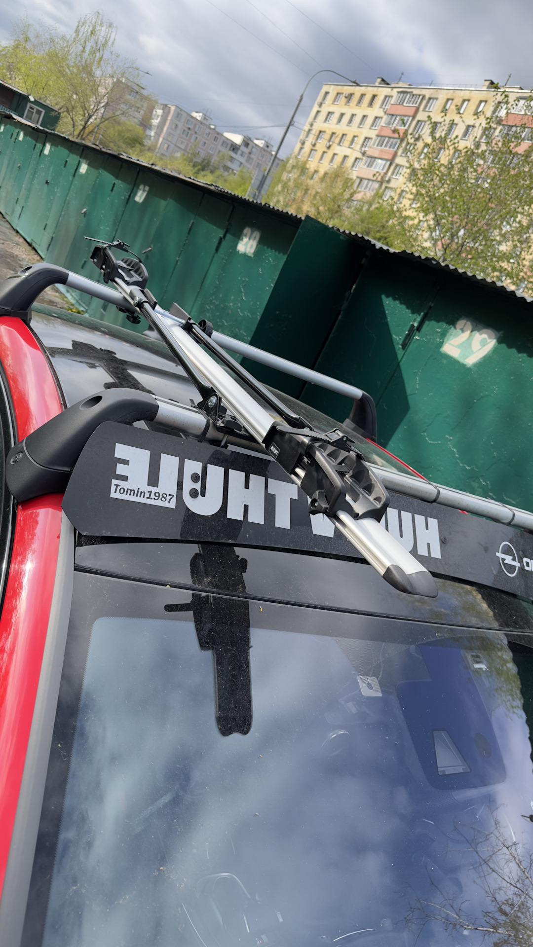 Итак, вся конструкция крепко притянута к перекладинам багажника, ничего нигде не болтается!