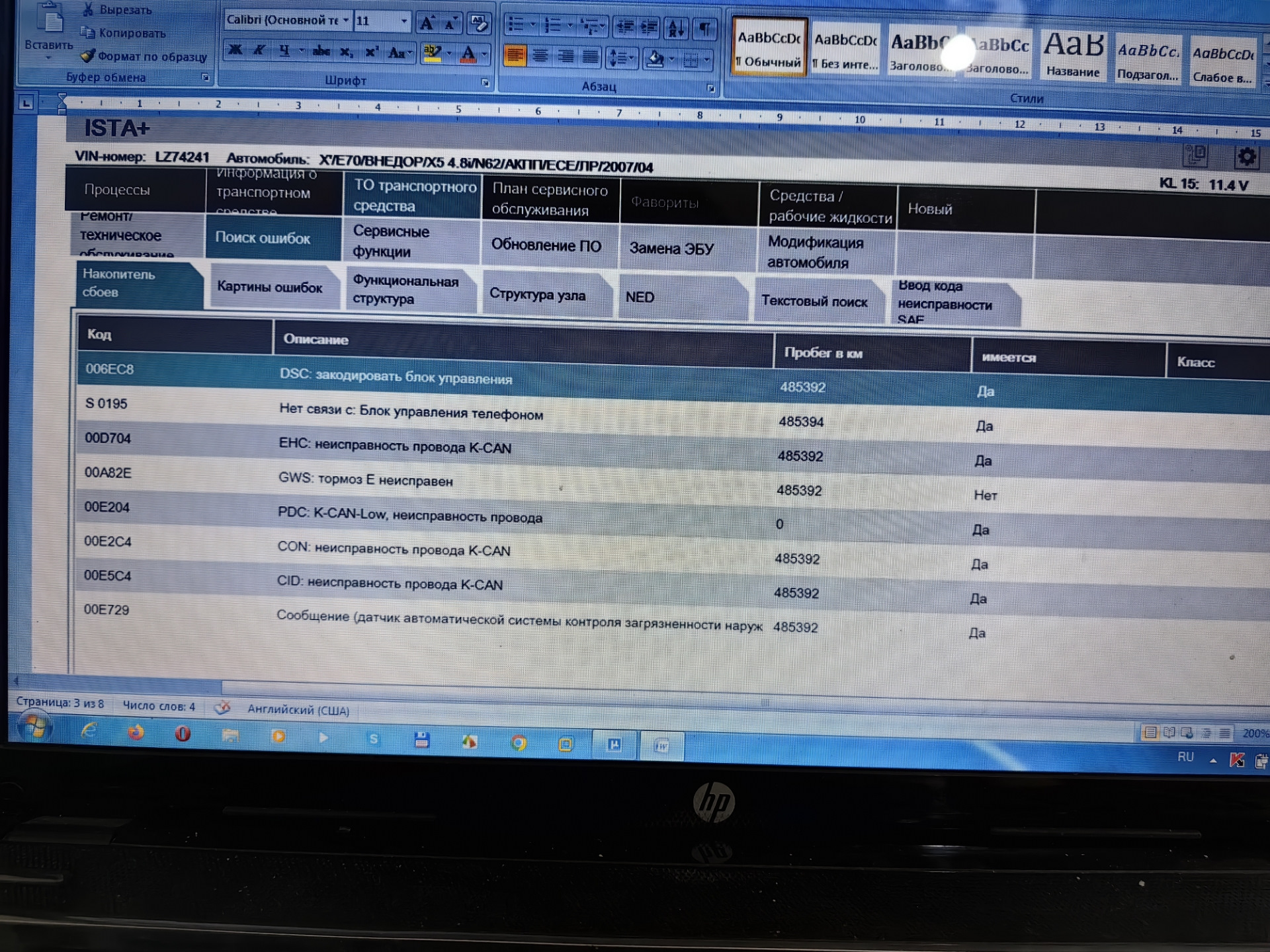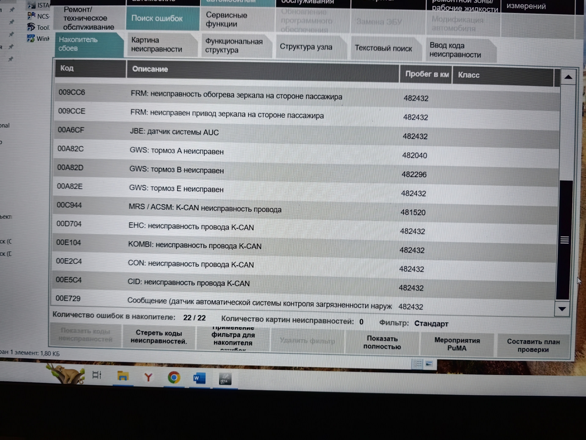 До стирания ошибок все выглядело вот таким образом. Как можно заметить ошибки практически все те-же, что и при покупке.