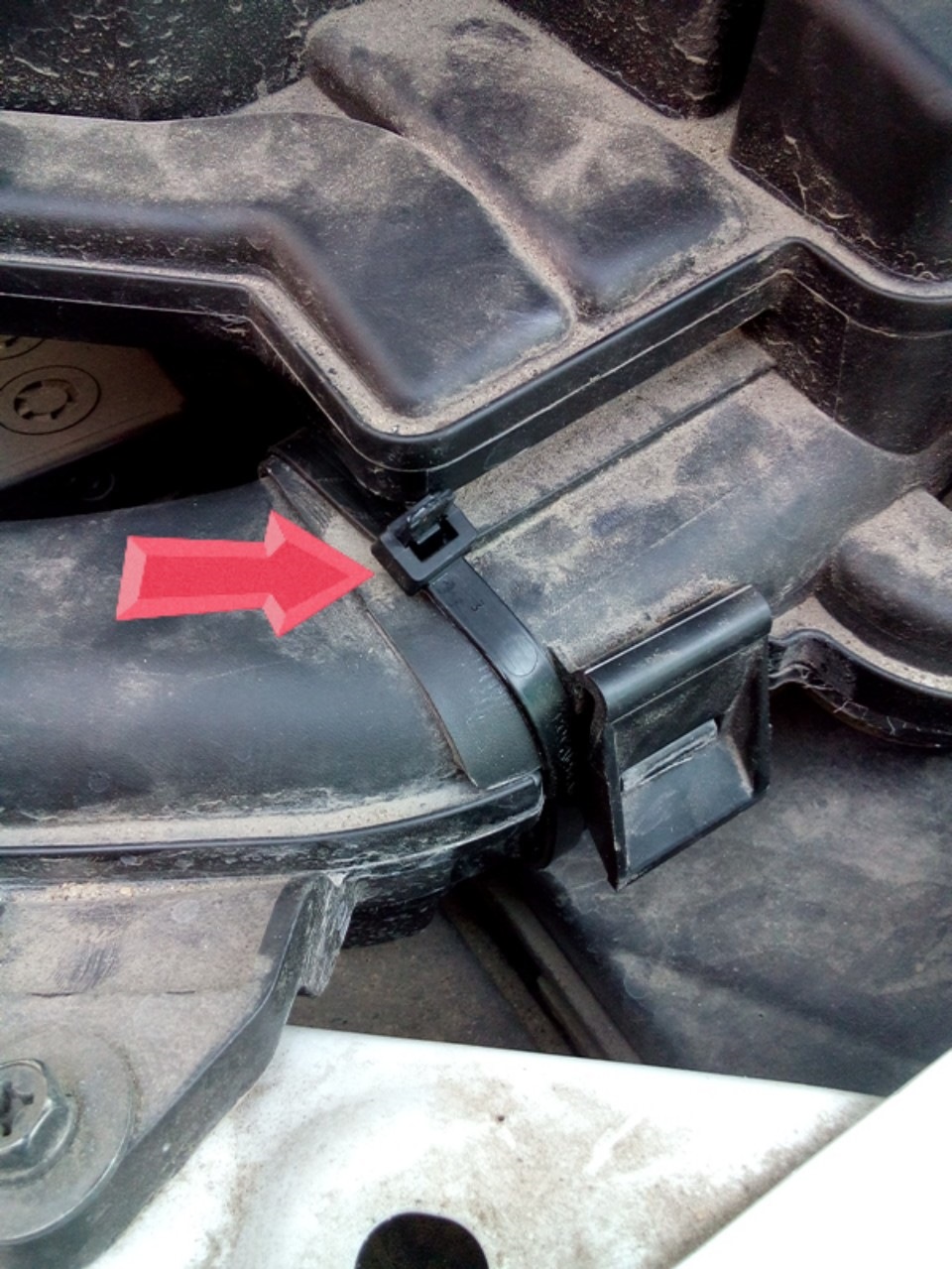 Купил пластиковый хомут за 5 рублей, и туго стянул первую часть воздухозаборника со второй(бесполезный короб над АКБ).Теперь ничего не гремит и не стучит при запуске движка.
