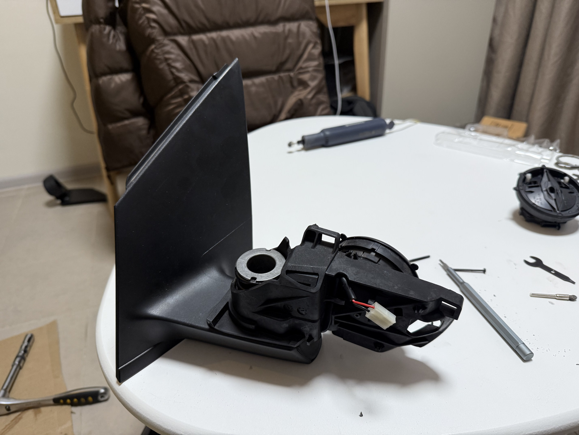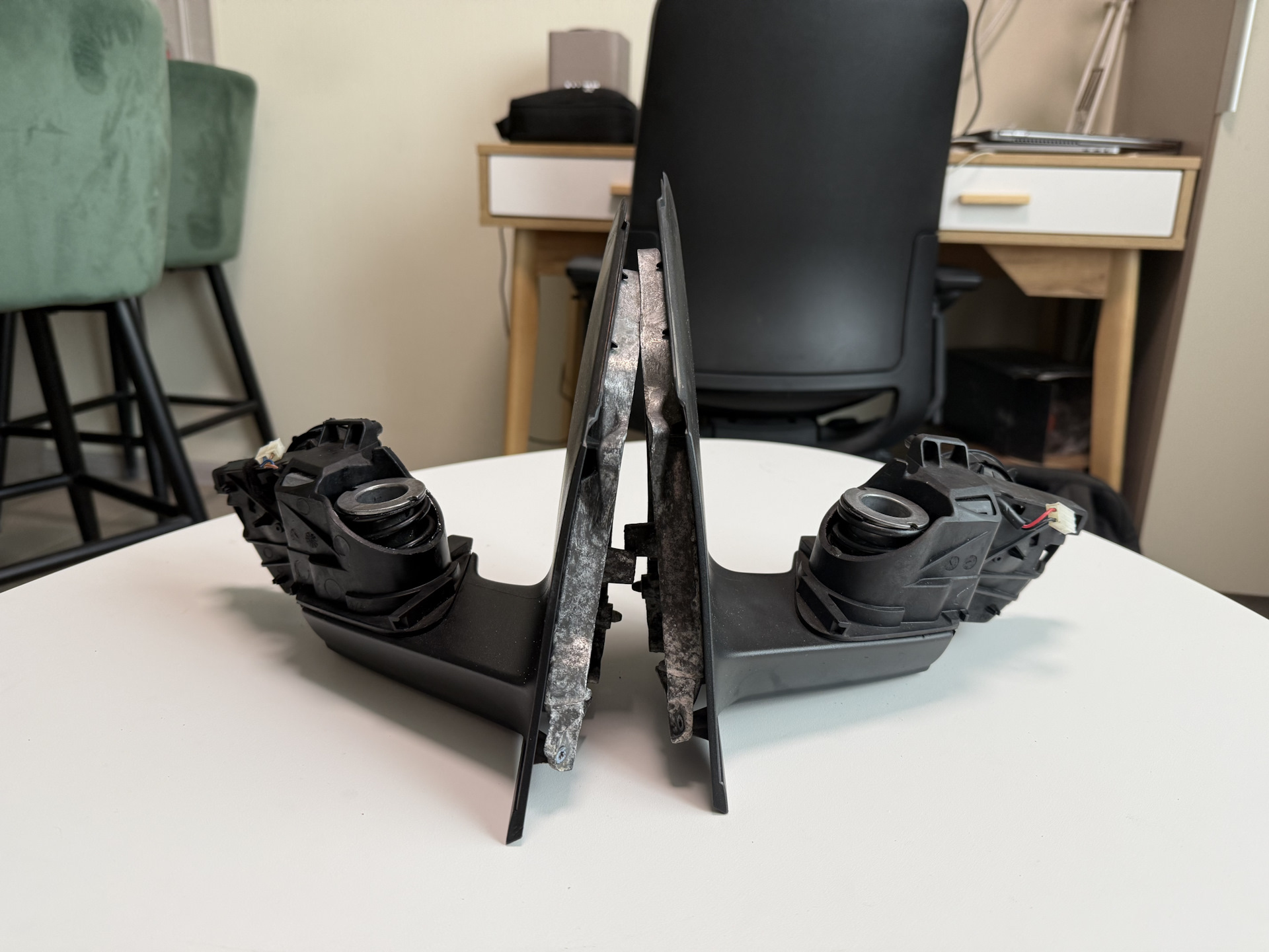 С разбором японских зеркал не возникло трудностей, пружины были сжаты и втулки извлечены за пару минут, а вот с моими зеркалами я даже не представлял что нужно сделать что бы их разобрать.