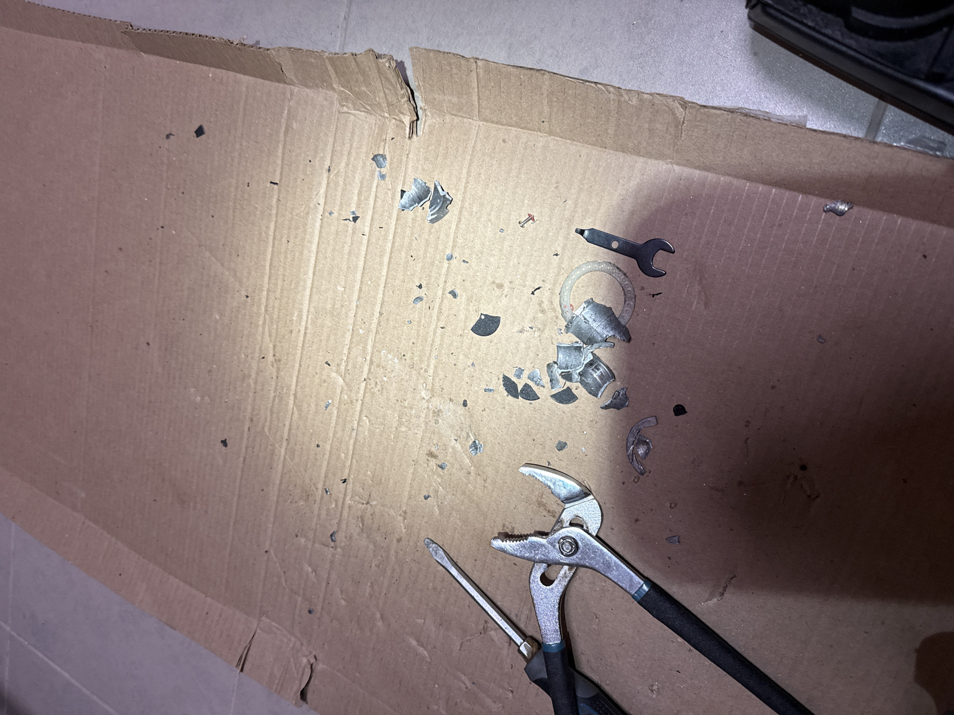 Пружина извлечена, втулка в доступе и не прижата, но все равно она сидит очень Мертво и провернуть ее невозможно, было принято решение ломать алюминий и извлекать любой ценой сохранив основание.