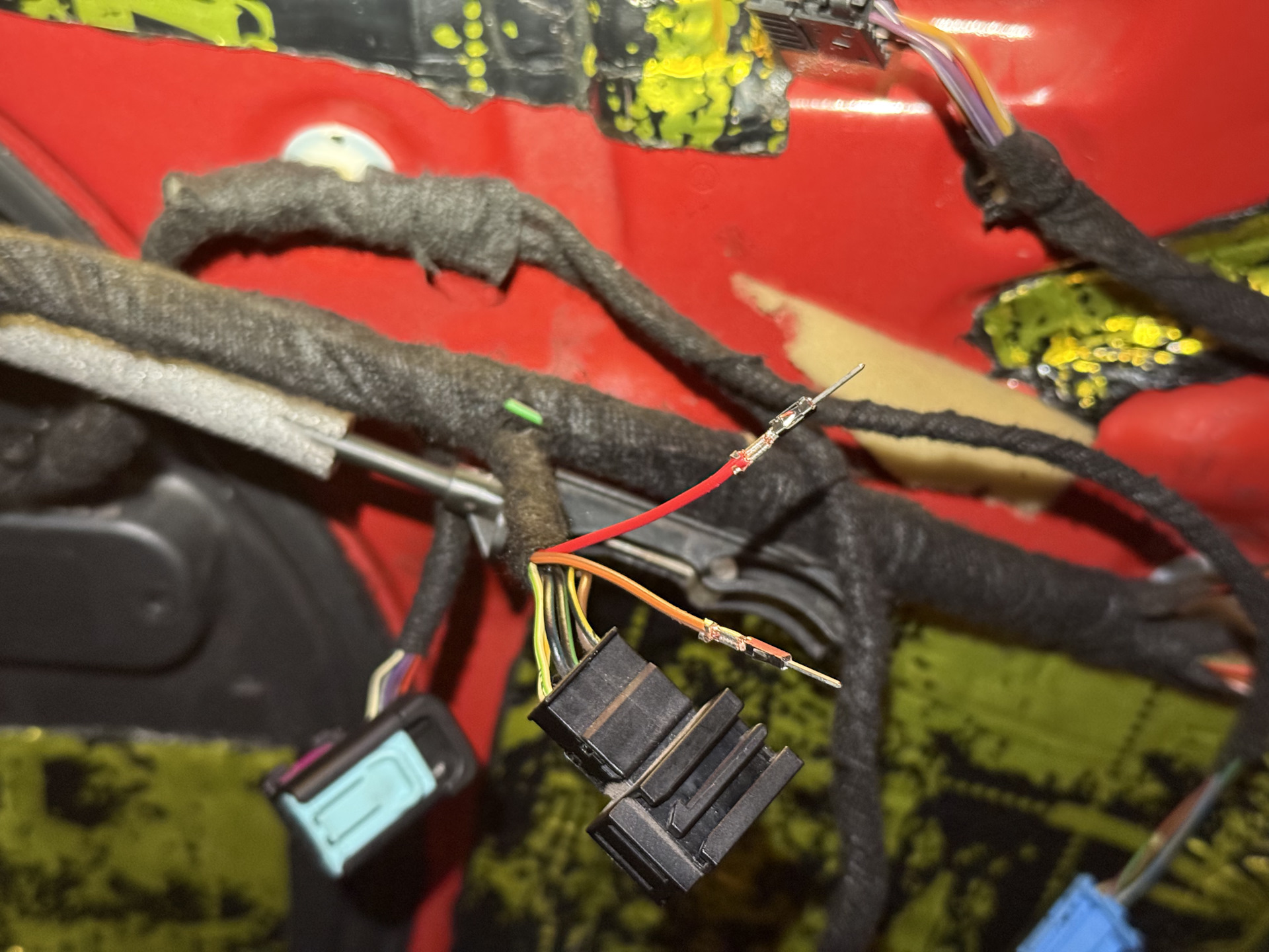 Перейдя к водительской двери делаем аналогично, + добавляем провод в 12 пин на управление до джойтика.