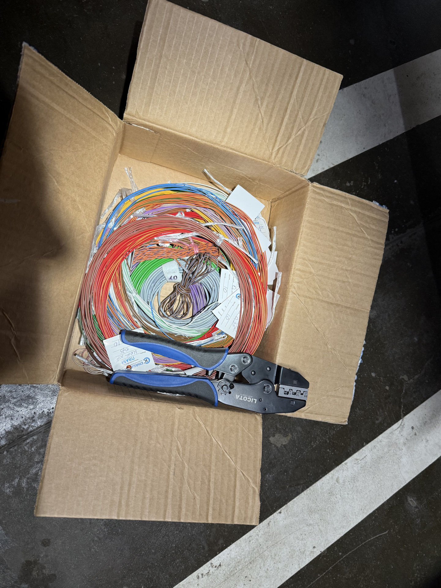 Вооружившись топовым инструментом и комплектом проводов различных сечений я приступил к изготовлению проводки на обе двери, 4 одинаковых питающих провода сечением 0.5кв и один управляющий 0.35 от мотора до джойстика.
