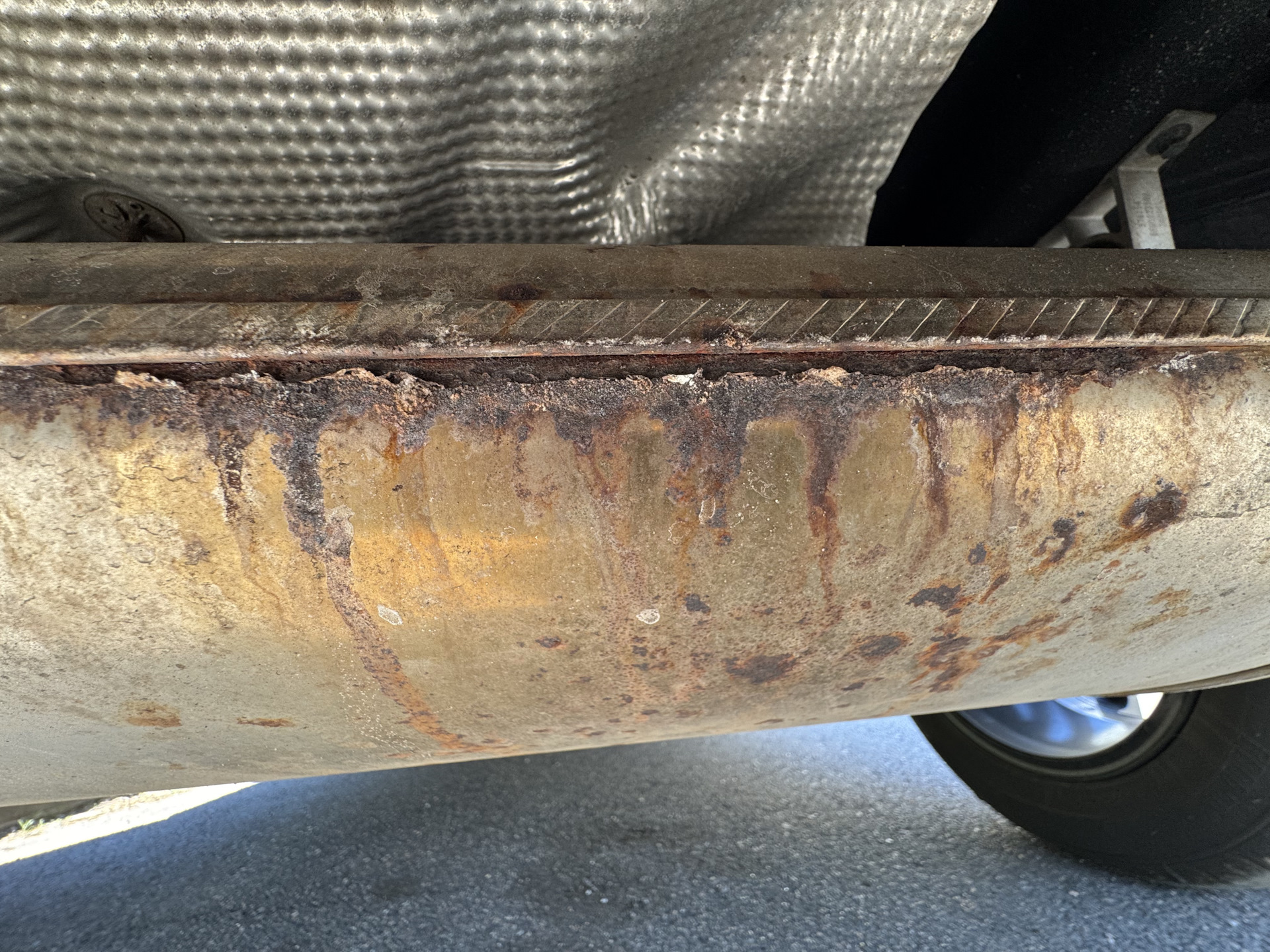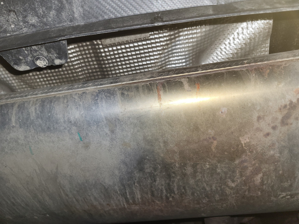 Антикор делал не на дилере и ребята дают гарантию 4 года на антикор, но с условием ежегодно приезжать к ним на осмотр. Так вот антикор делал в августе 2024 и первый осмотр в мае 2025. Бегло глянули все, сказали все хорошо. А я конечно же обратил внимание на заднюю банку глушителя, сначала показалось пару пятен небольшой коррозии, а потом увидел что уже откровенная гниль по шву. Не сказать, что я был поражен, но немного удивился. Машина куплена 10.08.2024, а с завода вышла 07.2024, т.е. машине и года нет.
