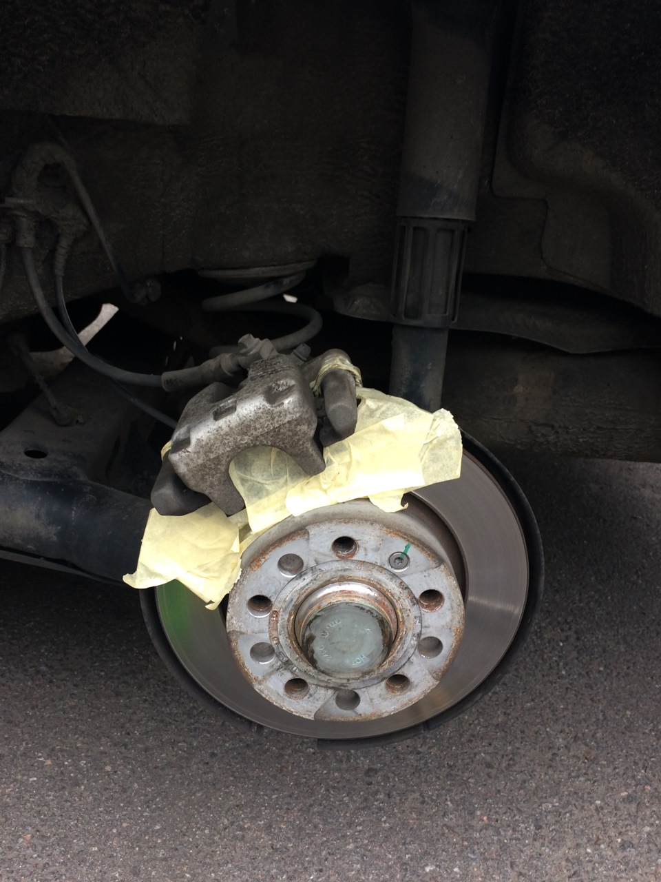 На прошлой неделе покрасил суппорта. Красил у друга Minotavrik из клуба NOStream в гараже. Все как у всех, ничего сложного. Снимал суппорта вытаскивал колодки и красил с баллона. Пока фото только заднего суппорта. Позже добавлю остальные фото.
