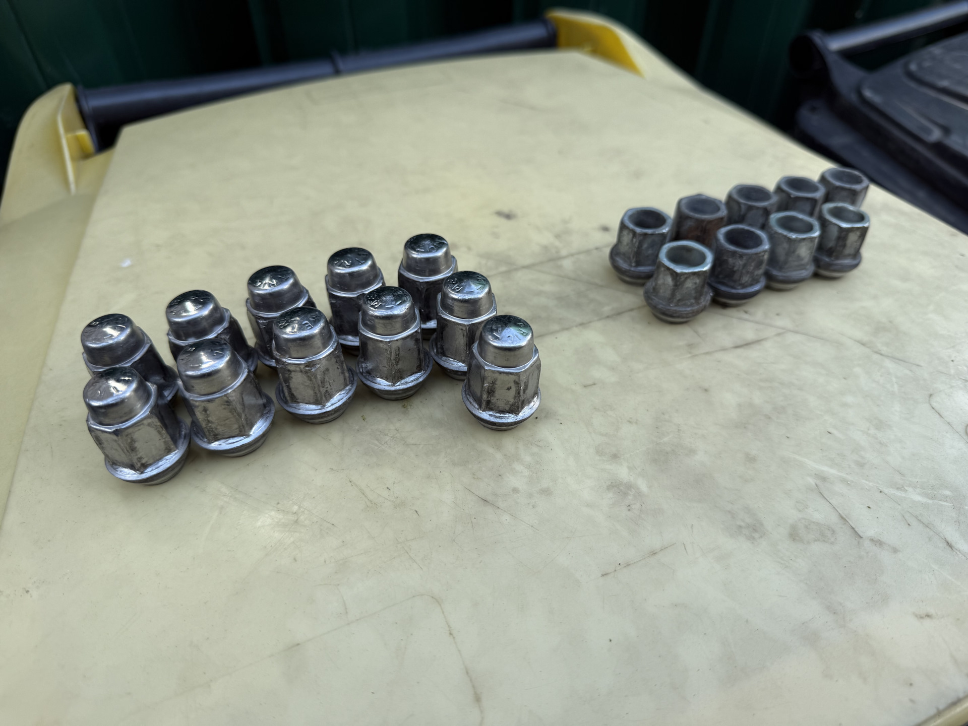 Собственно было решено просто заменить все штатные гайки на какой-либо альтернативный вариант закрытого типа, и цельной конструкцией без колпачка. На всем известных маркетплейсах хватает вариантов, но очень много негативных отзывов, по причине того что гайки начинают очень быстро коррозировать ввиду некачественного покрытия. Изучив вопрос немного детальнее решил остановиться на гайках бренда MASUMA. Купил я их в оффлайн магазине, торговый центр "Автозапчасти на Лещинского", г. Минск, ул. Лещинского 14а, где была возможность визуально хотя бы сравнить разные варианты от разных производителей. Данные гайки показались мне довольно качественными, покрытие, резьба, гравировка производителя не вызывали сомнений. В остальном время покажет как они себя будут вести.