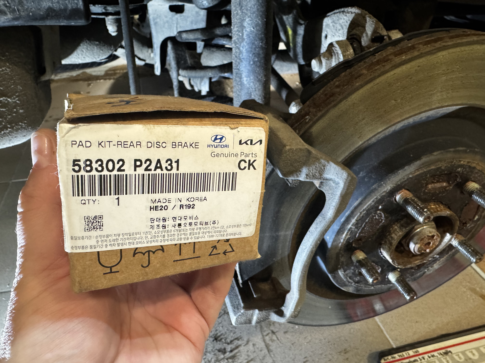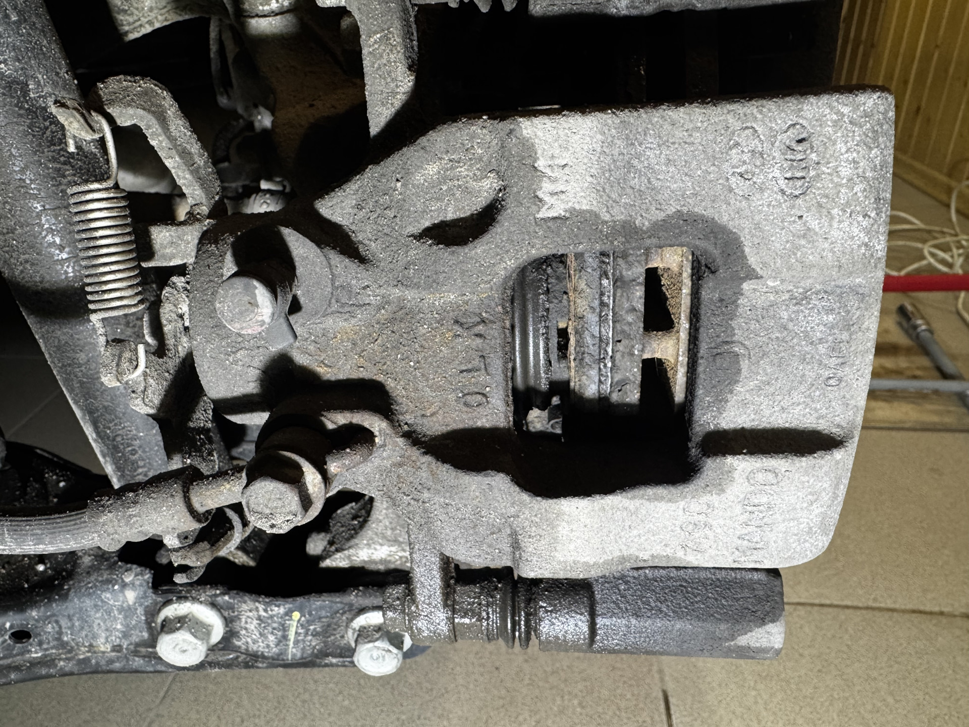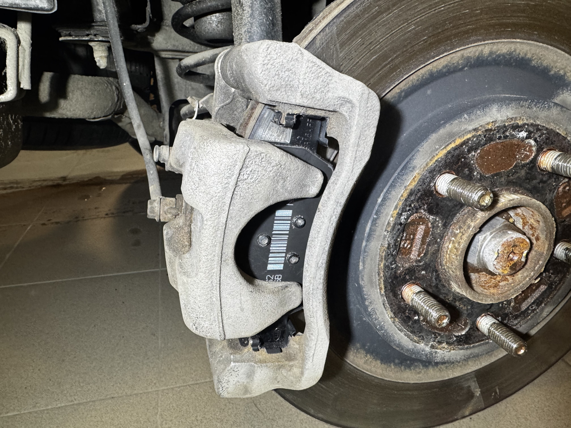 Всем привет! Неделю назад заметил, что по утрам, когда начинаю движение от дома, происходил небольшой писк с правой задней стороны. Сначала я подумал, ну наверное попал камушек между пыльником и диском тормозным там, как через некоторое время я его не слышал. Но каждое утро снова всё повторялось. Это как день сурка, блин. И именно на холодную машину слышен звук, потом исчезал. Вообщем заехал я к себе в гараж в выходной день. Взял с собой комплект задних колодок, которые я заказывал, боюсь вспомнить даже когда. Брал тогда на запас по адекватным ещё ценам. Снял колесо и увидел, что действительно колодки износились прям в ноль. Та ограничительная (антискрипная) пластина, которая стоит на самой колодке, она и попискивала. Ну что… Начнём менять. Кто захочет самостоятельно поменять также сам и сэкономить денег, думаю этот пост будет ему полезен. Ничего сложного в этом нет. Далее будет много фото и подписи к ним. Погнали…