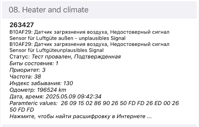 Вторая — замененный датчик качества воздуха и ошибка по нему не ушла после замены.