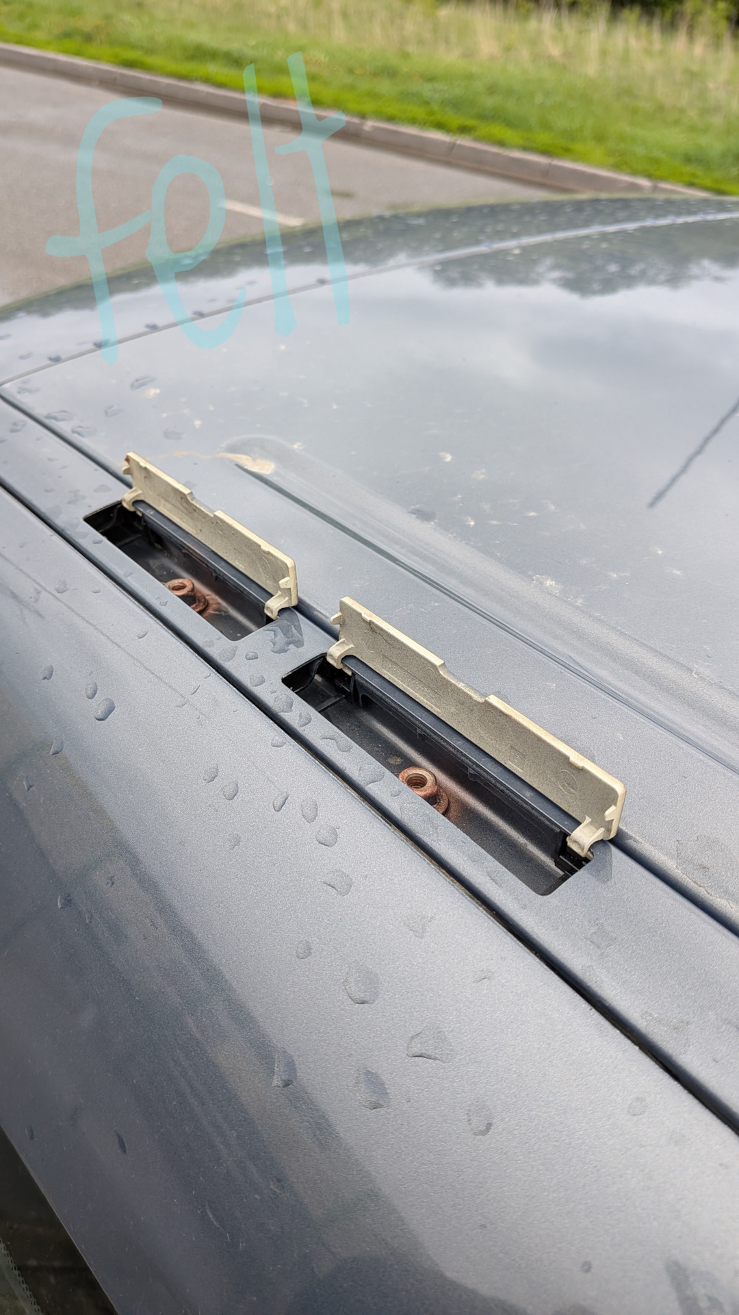 Три из четырех болта притягивающих дугу у водостоку — оригинал.
