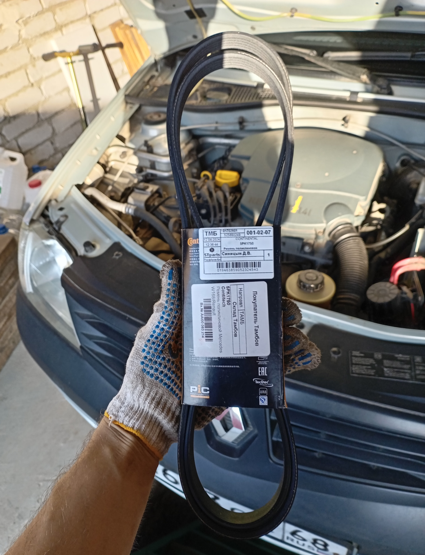 Ремень менял 5 лет назад, на пробеге 128 тыс км. Сейчас пробег 184 тыс км. Нехитрый математический прием дает нам понять, что пробег установленного ремня BOSCH 5PK1750 артикул 1987946045 составляет 56 тыс км. Пора уже поменять. Купил для замены ремень Continental (5 PK 1750) за 1600 рублей.