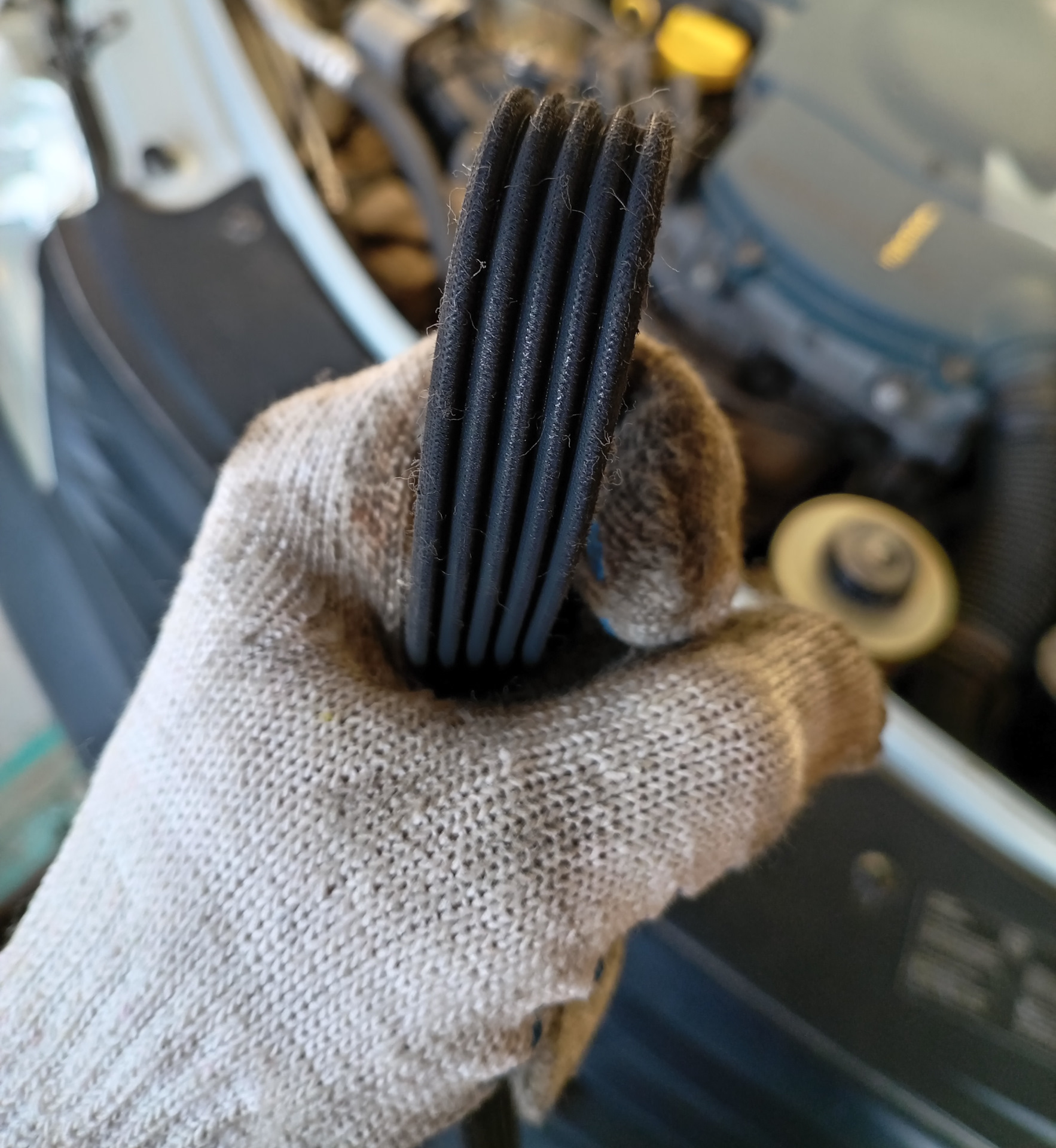 Старый ремень на вид в отличном состоянии, даже микротрещин нет ни на одной стороне. Попробовал ролики, которые я тоже менял тогда вместе с ремнем — отличные, люфта нет, вращаются очень хорошо. Посмотрим, как покажет себя Continental.